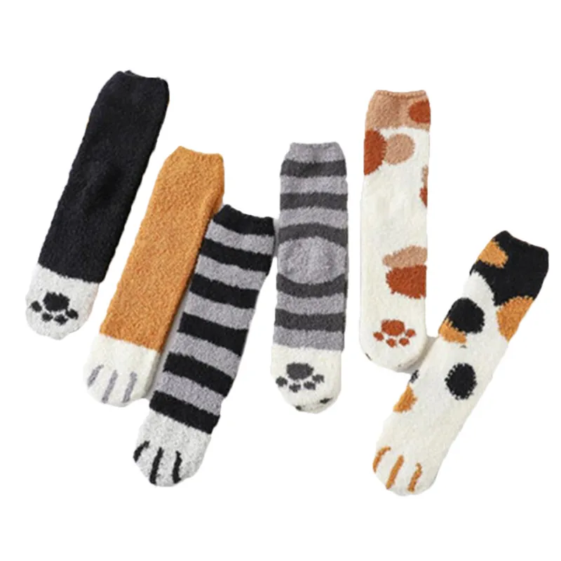 Зимние носки с кошачьими когтями, милые толстые теплые носки для сн...