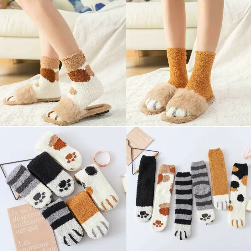 Зимние носки с кошачьими когтями, милые, толстые, теплые, для сна, ...