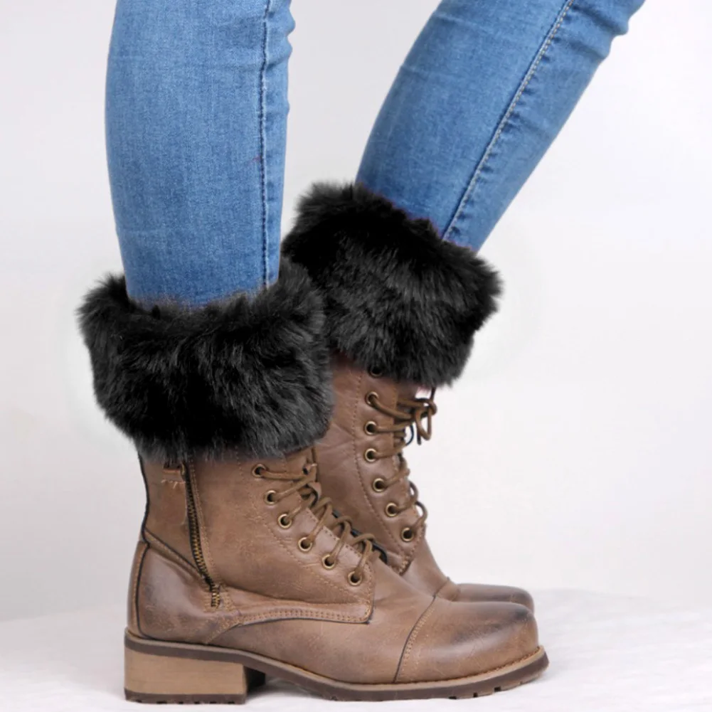 Дизайн из искусственного меха поможет вам сохранить ваши ноги в тепле.