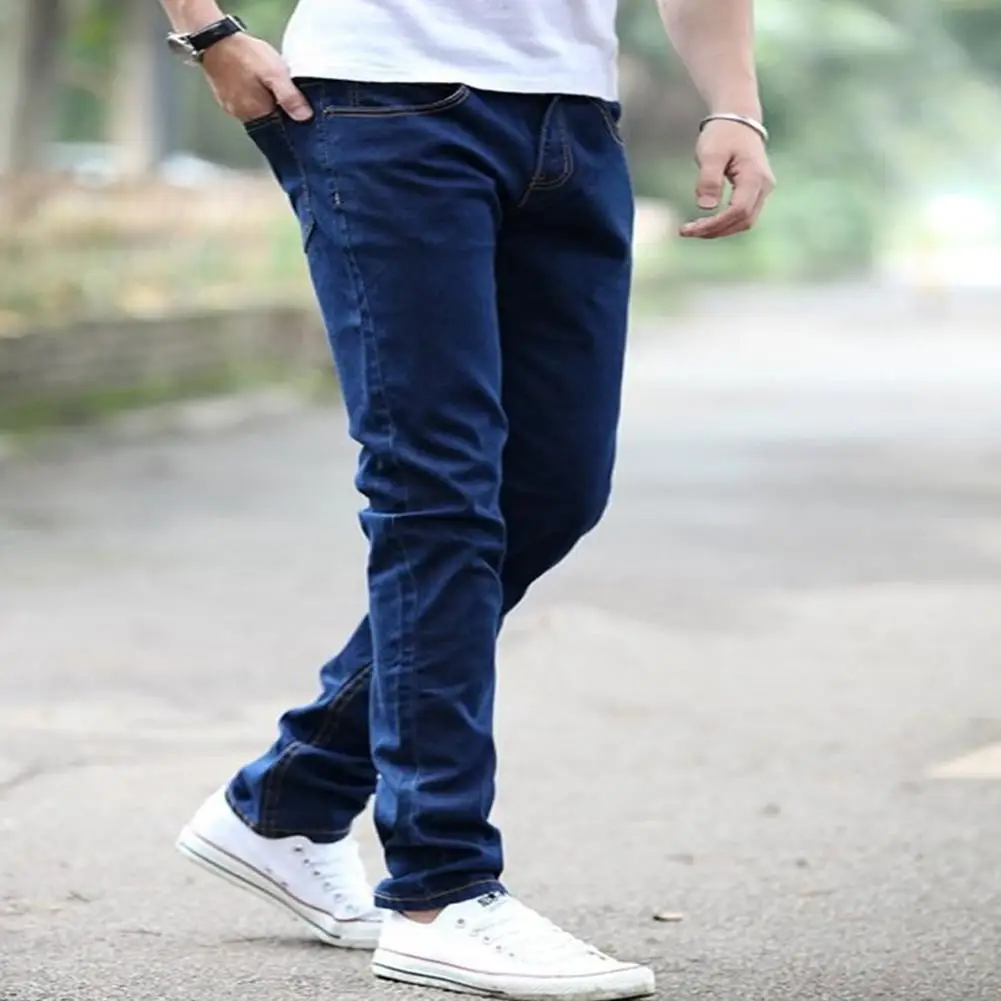 Мужские длинные брюки MISSKY, однотонные повседневные универсальные джинсы с прямыми штанинами, весна-осень