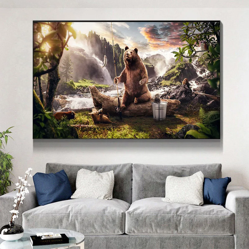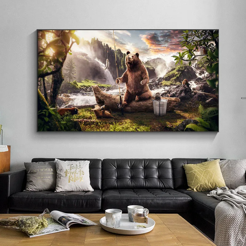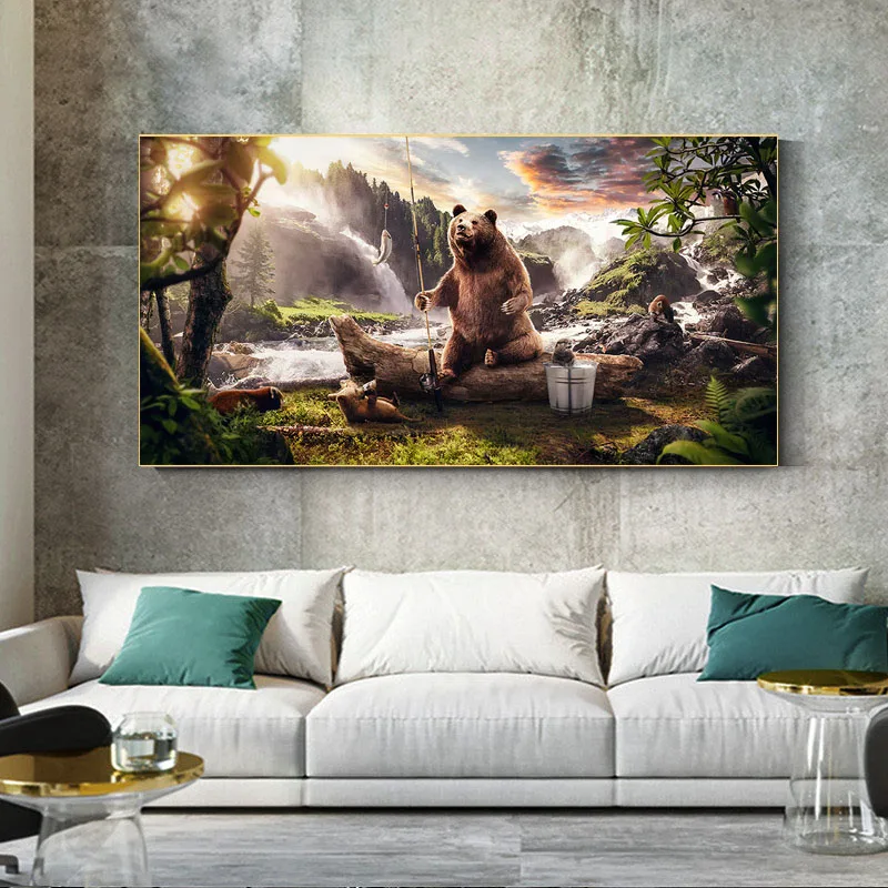 Настенные картины с изображением животных, пейзажа, медведя, рыбалки, холст, настенные художественные Декорации для дома, печатные плакаты, картины для гостиной