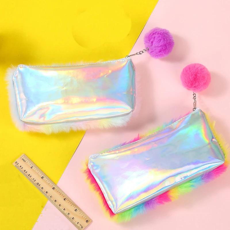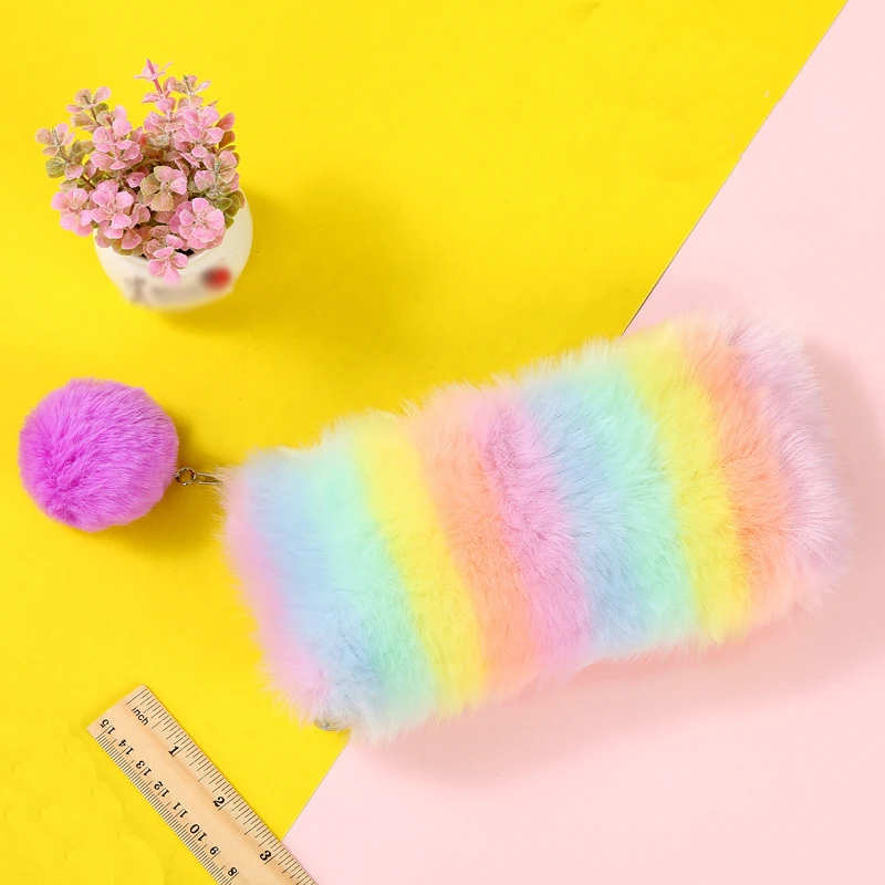 Радужный плюшевый чехол для карандашей, школьные принадлежности, канцелярские принадлежности, мяч, подарок, милая косметичка