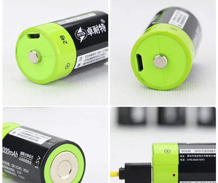 ZNTER, 6 шт., 1,5 в, литий-полимерный аккумулятор 4000 мАч, D-образный Аккумулятор для фонарика, медицинского оборудования и т. д. + USB-кабель для зарядки