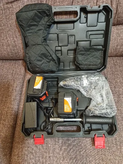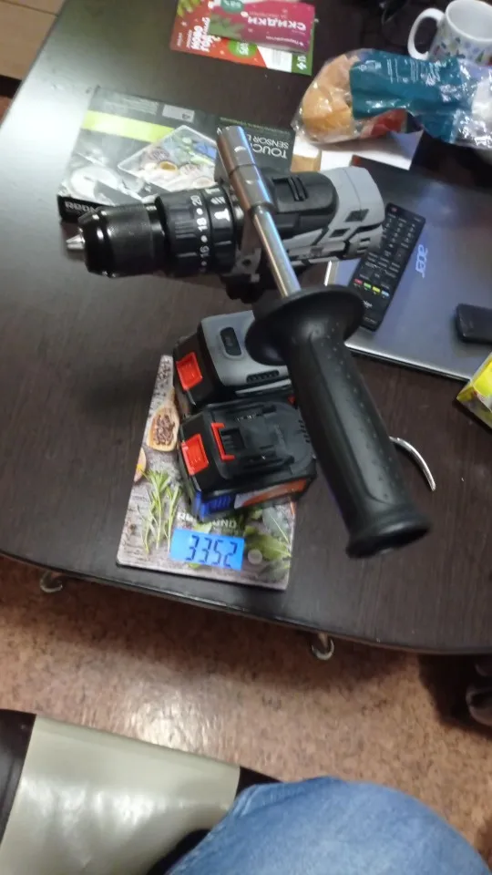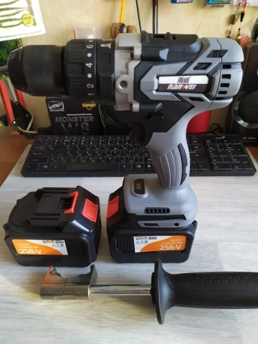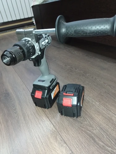Пришёл быстро, заказал 11.11 с купоном 8100р. Шурик мощный, увесистый, руками не остановить, даже не пытайтесь, можно получить травму. Пластик на аккумуляторах нежный, надо быть аккуратно. Заряжены оба полностью. Чехол садиться очень плотно, возможность одеть ручку с чехлом отсутствует. Или же делать отверстие в чехле, под отверстие с резьбой. Накладная ручка если с нее снять гайки, подходит к резьбе в корпусе шуруповерта. Но есть опасность что корпус не выдержит. Не доверяю я силумину.