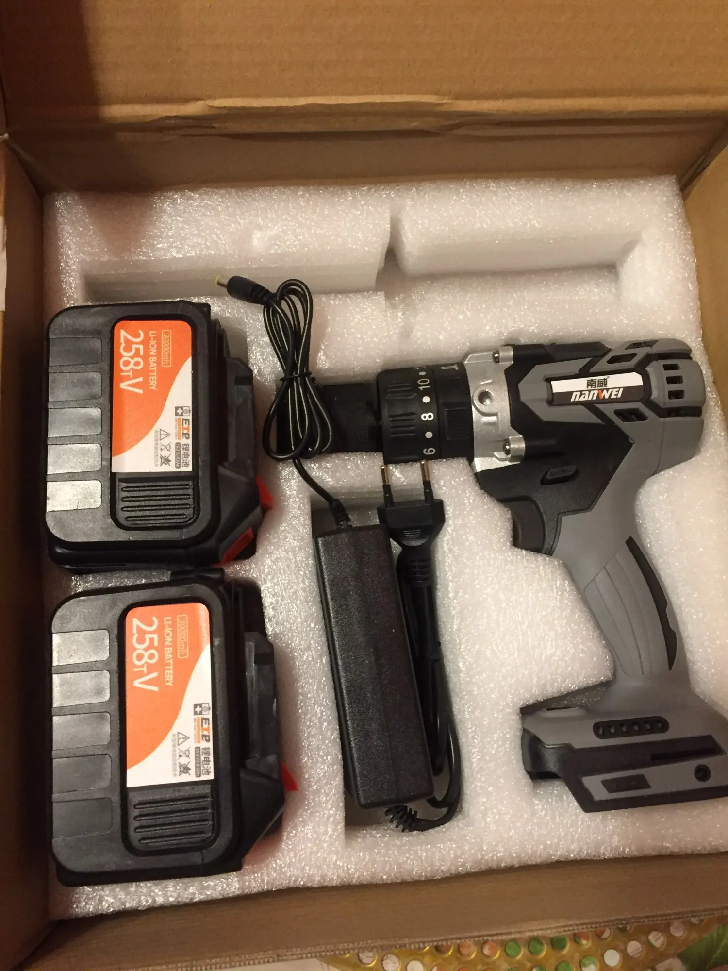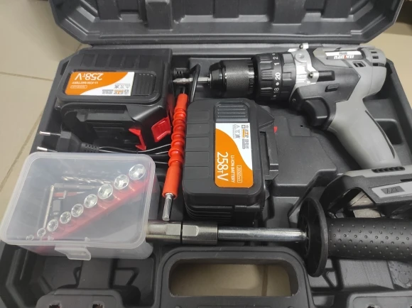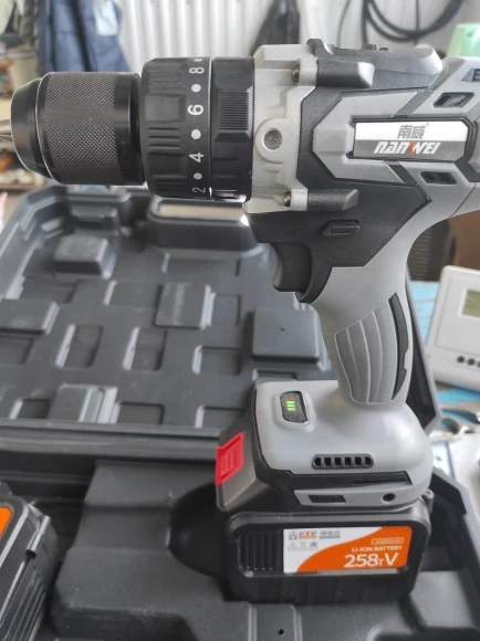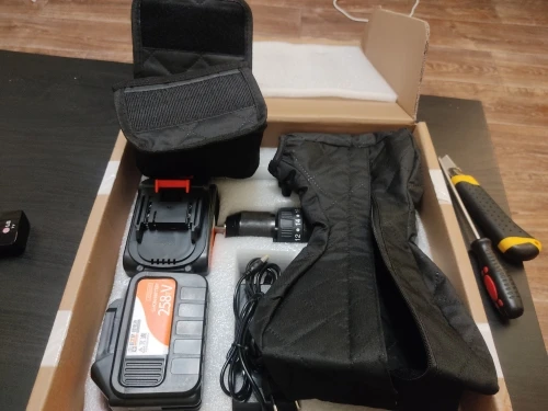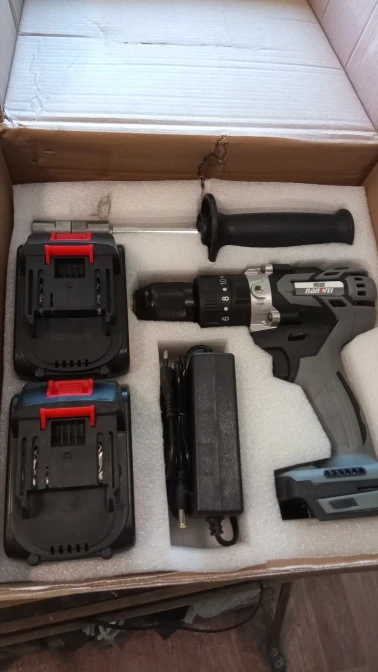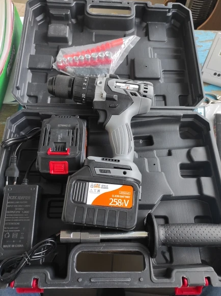 Заказ доставили за 10 дней , выбрал экспресс доставку , на почте пролежала почти две недели т.к. заведующая была на больничном .Шуруповёрт мощный , тяжёлый , переключатели работают. Аккумуляторы полностью заряжены. Если не придираться по качеству сборки и зазоров то сделан хорошо .Взял его ,так как у соседа такой же фирмы , только тут с кейсом и небольшим количеством приблуд . По кейсу очень хлипкий , пластик очень тонкий , можно быстро сломать .Брал за 9600 руб с учётом купона и промокода. При заказе лучше брать в комплекте теплый чехол для аккумулятора и шуруповерта , его я заказал отдельно т.к выбрал не тот комплект .