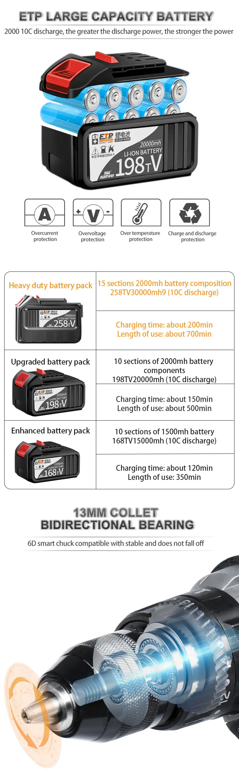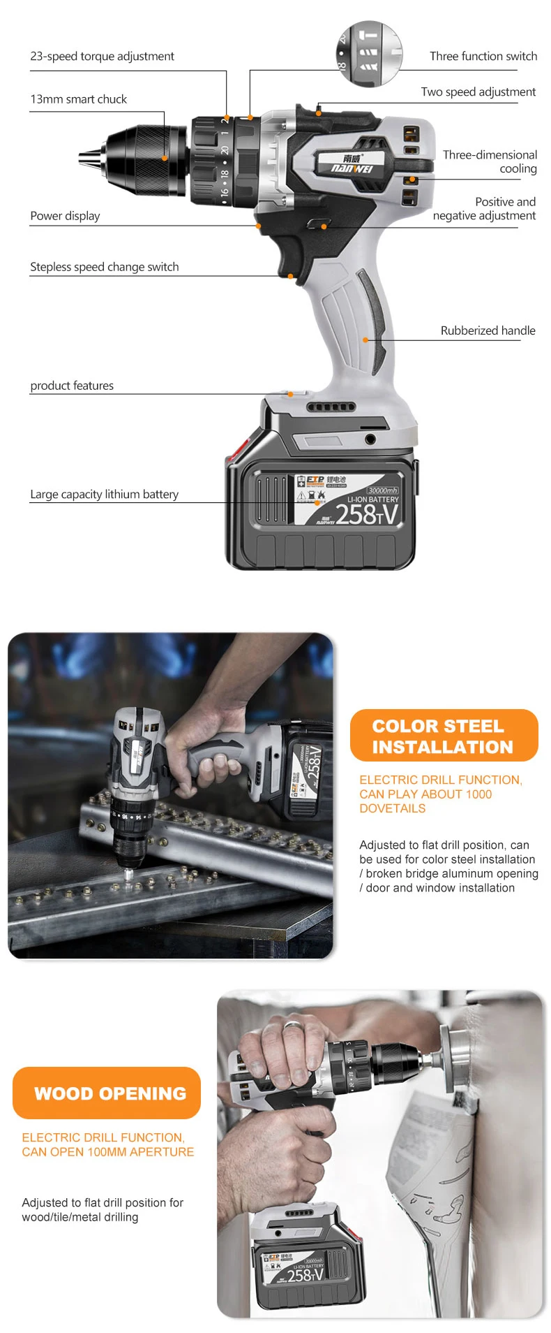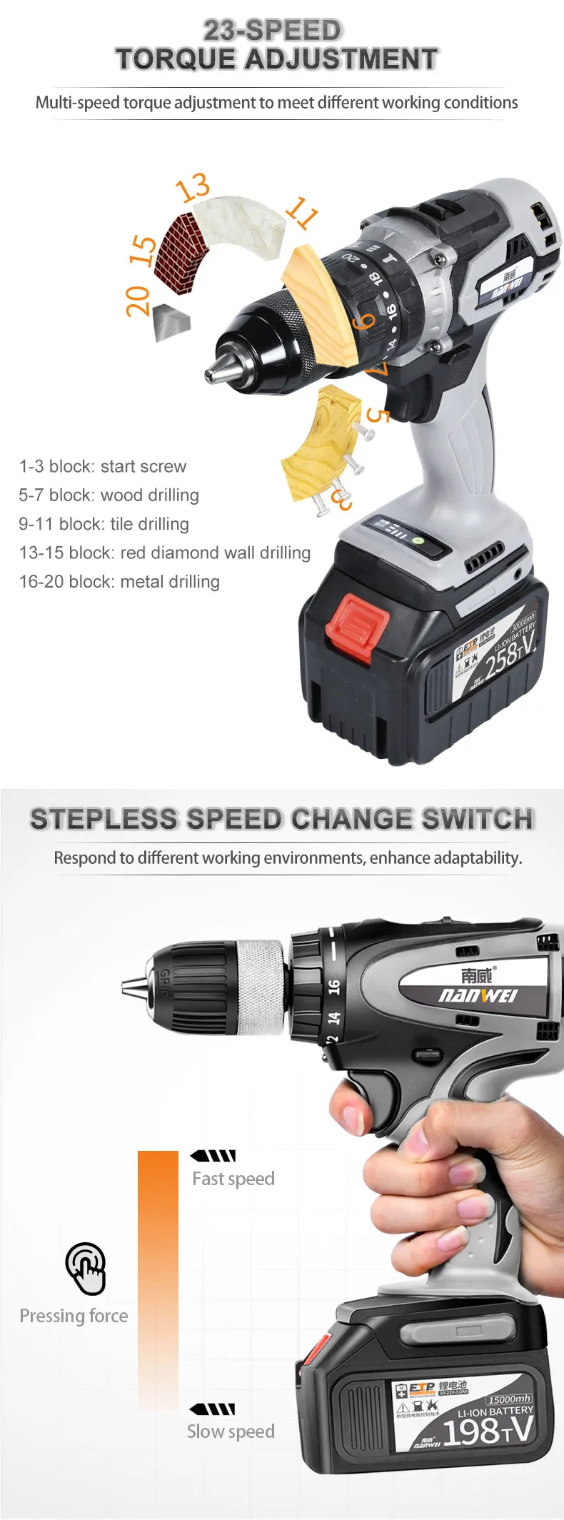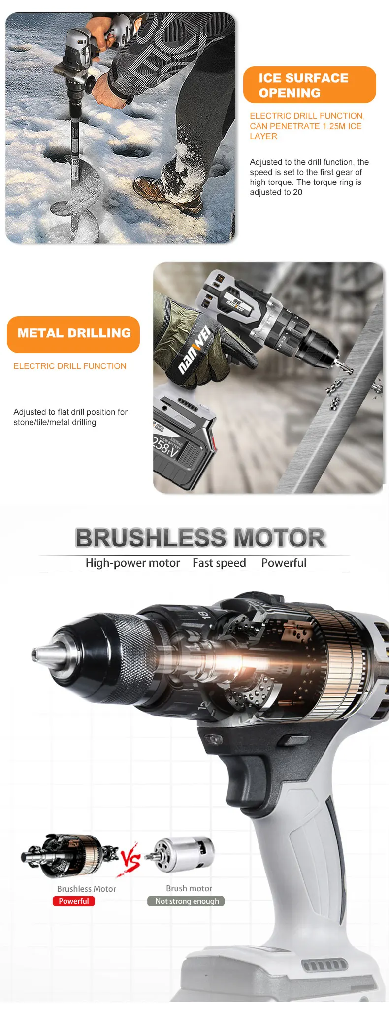 NANWEI 21V 13 мм Беспроводная Дрель промышленного класса бесщеточная Ударная дрель 12 "металлическая Автоматическая блокировка патрона ледяная дрель для рыбалки