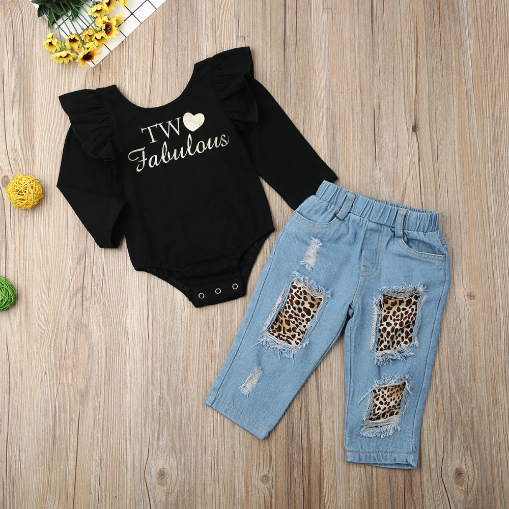 2 шт., детский джинсовый комбинезон с оборками и надписью