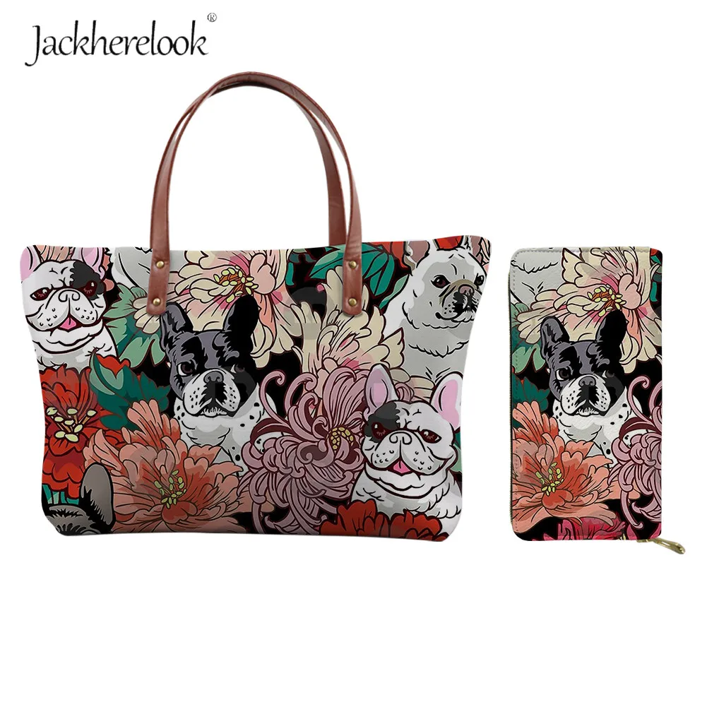 Женская наплечная сумка и кошелек Jackherelook, 2 шт., кошелек с цветочным принтом бульдога шнауцера, женская кожаная сумка-мессенджер