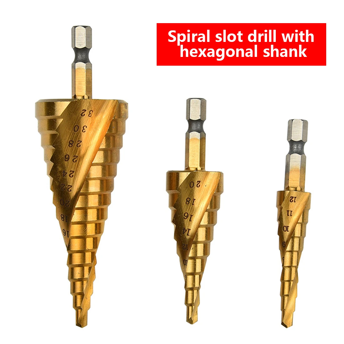 2. Новая HSS стальная большая ступенчатая конусная дрель титановая долота набор резец отверстия, который сделан из HSS стали, и с титановым покрытием для уменьшения трения и тепла