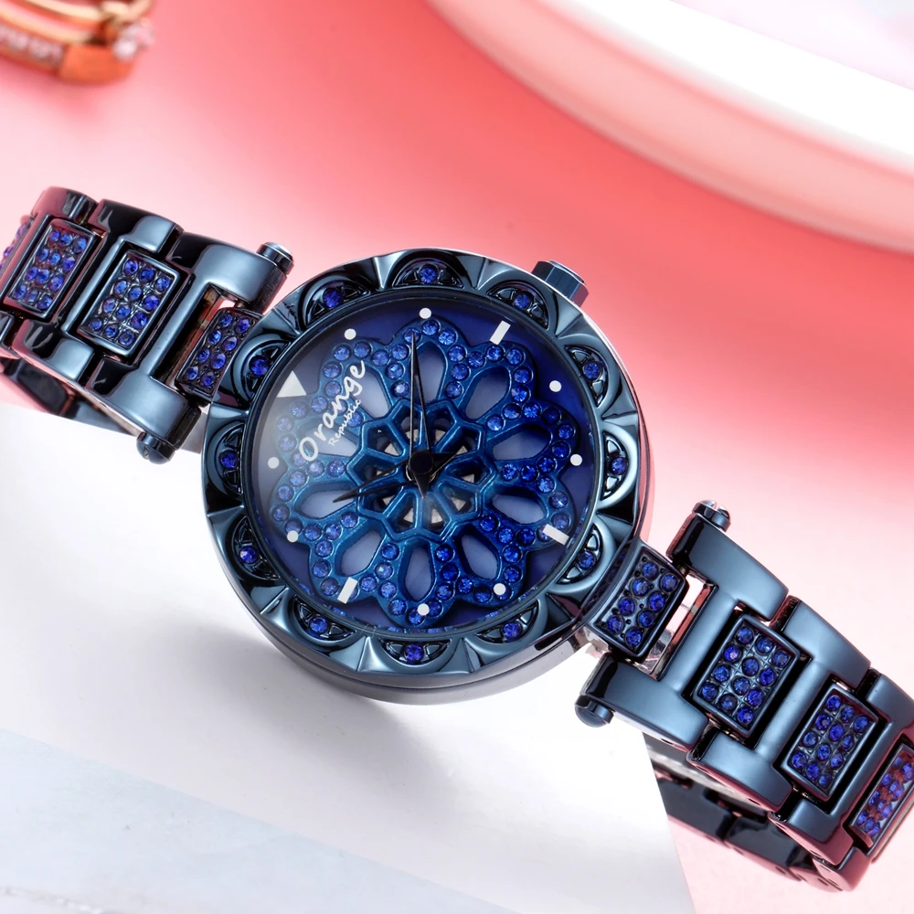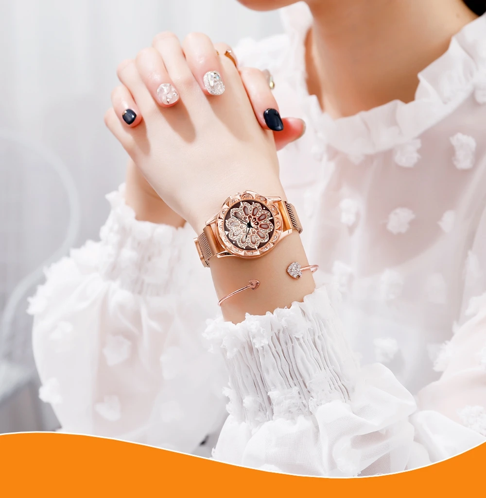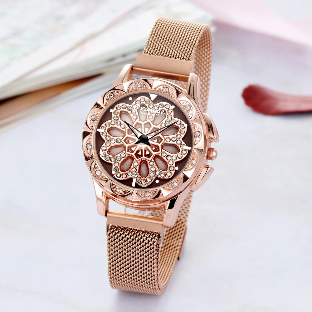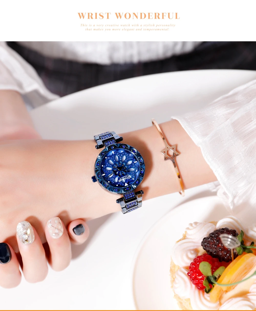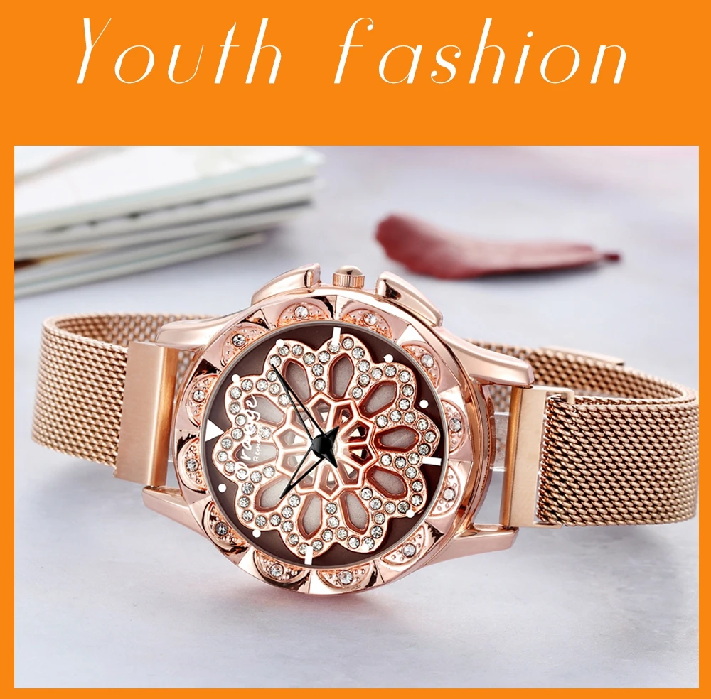 Часы наручные Lucky женские, шикарные повседневные водонепроницаемые с цветочным циферблатом, с вращением на 360 градусов