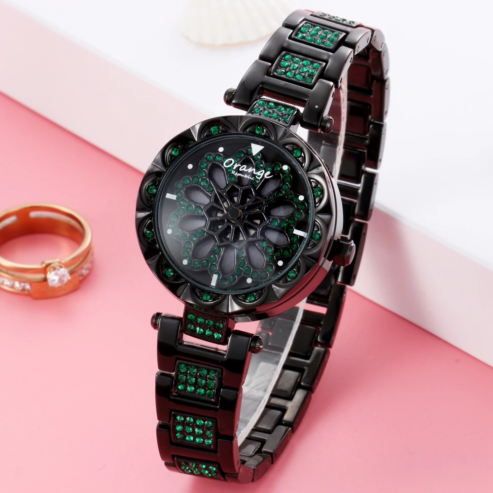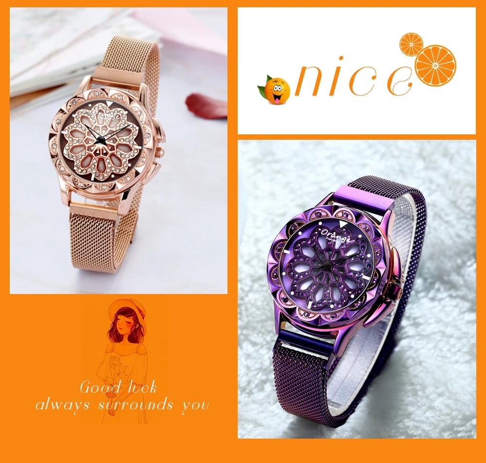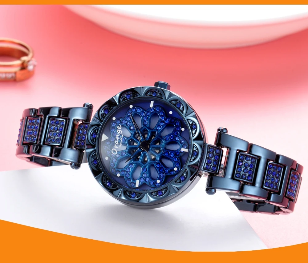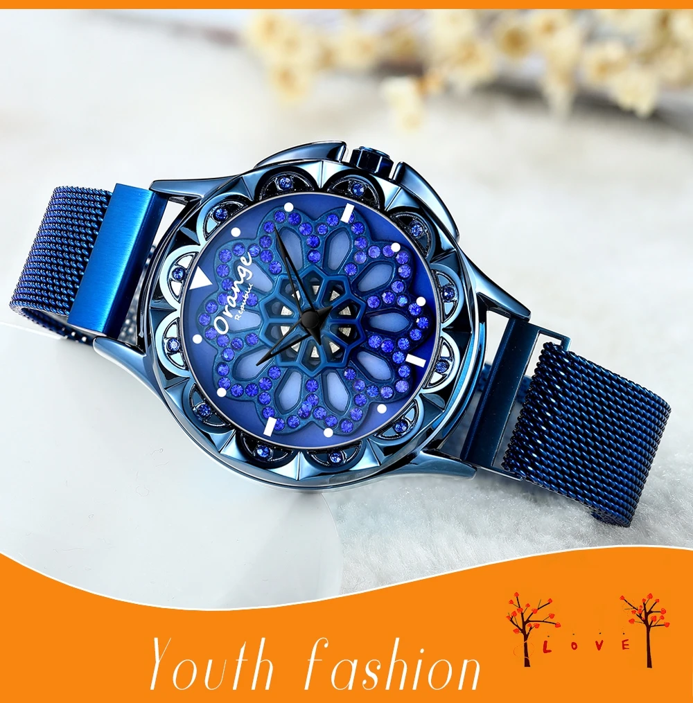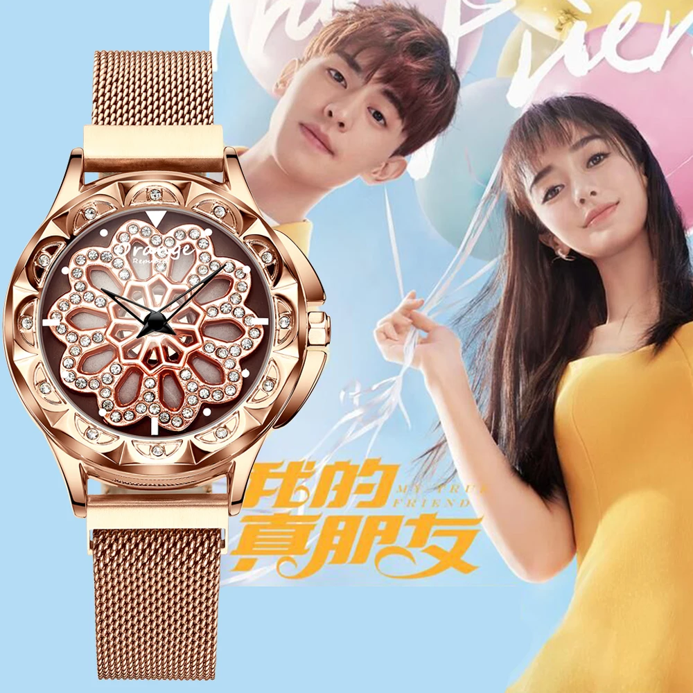 Часы наручные Lucky женские, шикарные повседневные водонепроницаемые с цветочным циферблатом, с вращением на 360 градусов