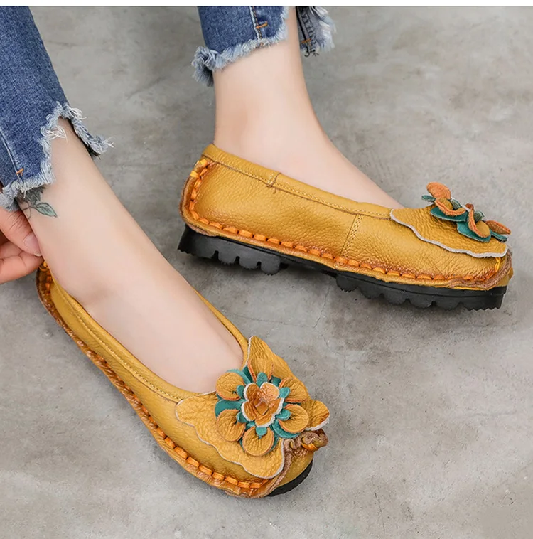 Женские туфли ручной работы, Этнические женские туфли из натуральной кожи на плоской подошве, цветочные Мокасины, лоферы на мягкой подошве, женская обувь без застежки, 2022