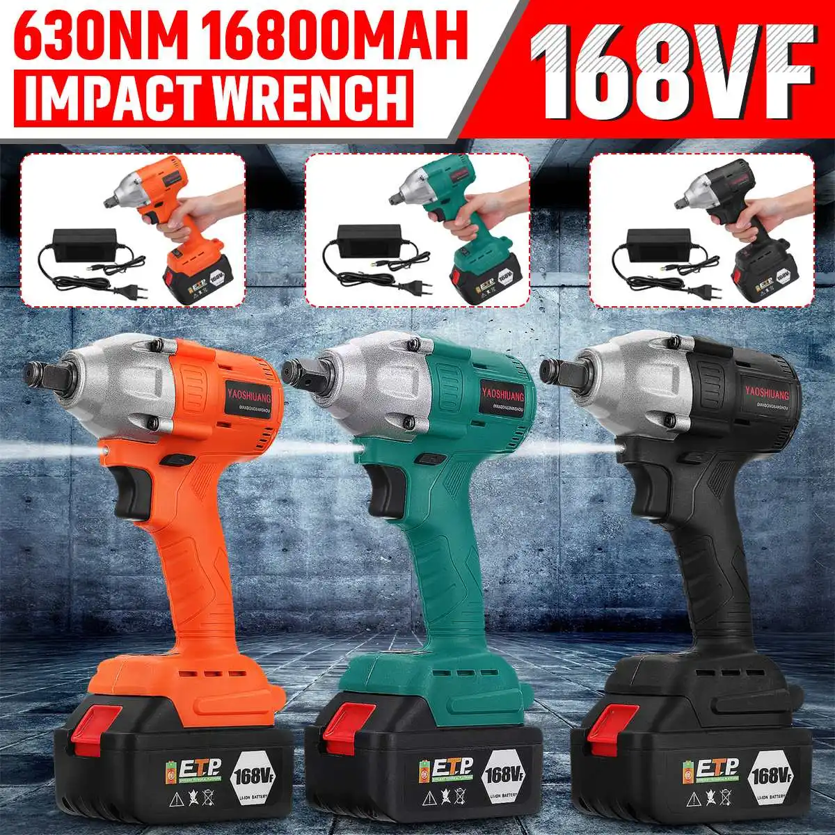 Технические характеристики: Цвет: черный, зеленый, оранжевый (варианты)Размеры: 15 × 7,5 × 25 см (5,9x2,95x9,84 "(Д x Ш x В)Вход: 110-240 ВБатарея Тип: 168VFЕмкость аккумулятора: 16800 мАч Максимальный крутящий момент: 630N.mСкорость без нагрузки: 0-30000 об/минВилка: регулирование ЕС, регулирование США