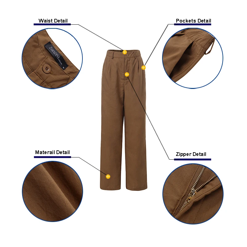 Осенние стильные тактические брюки ZANZEA, женские повседневные длинные штаны, однотонные прямые брюки, женские штаны на молнии, шаровары