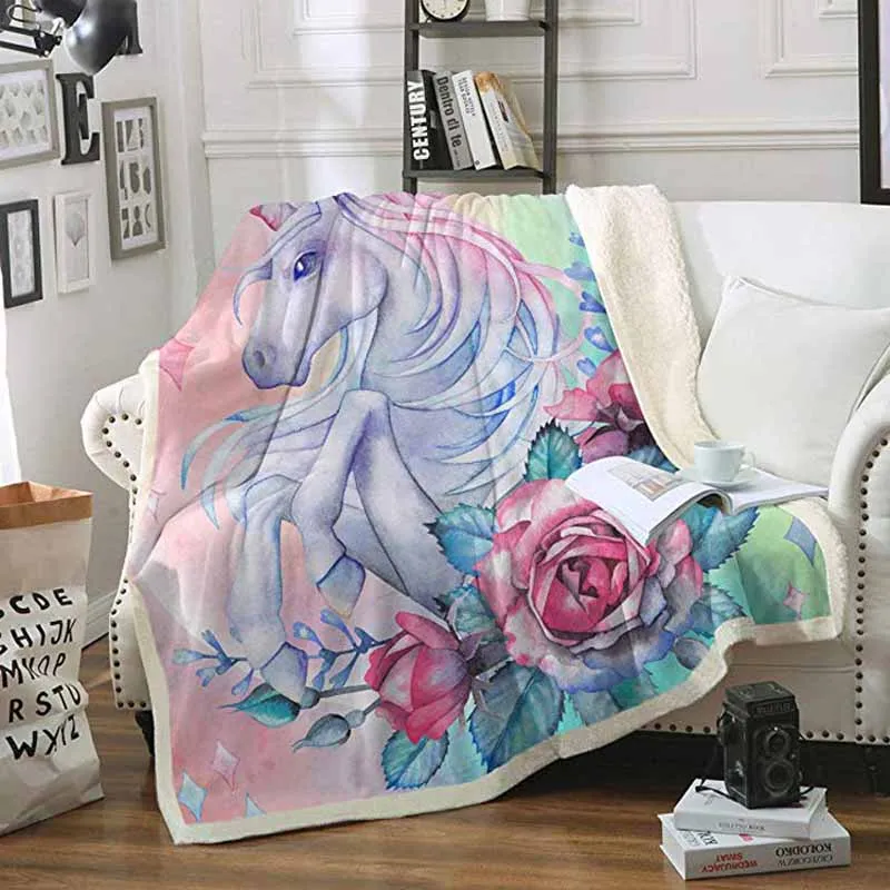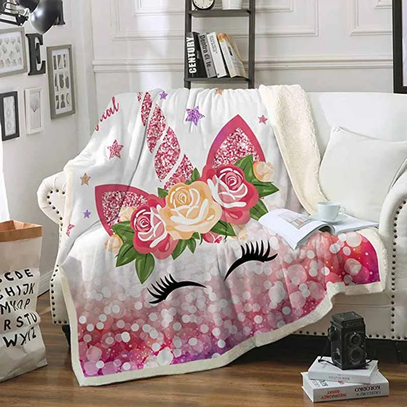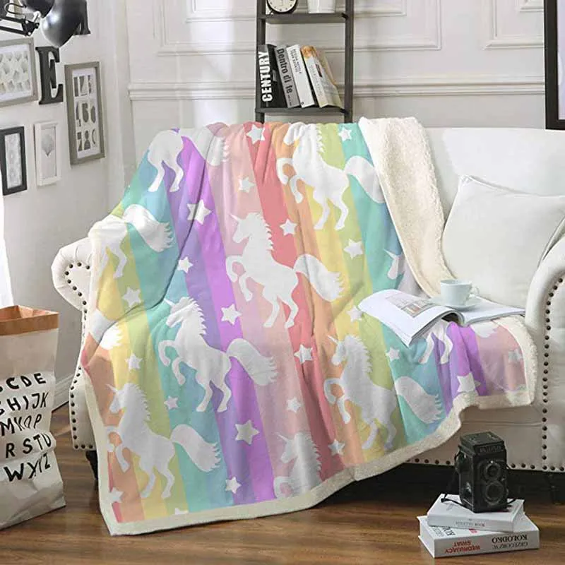 Мультяшный Радужный Единорог, одеяло для детей, взрослых, зимнее, теплое, цветное, Цветочный, мягкое, Коралловое, Флисовое одеяло на кровать, покрывало, одеяла для сна