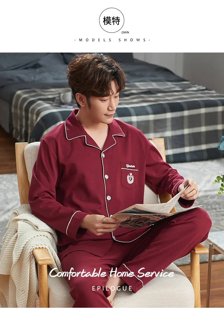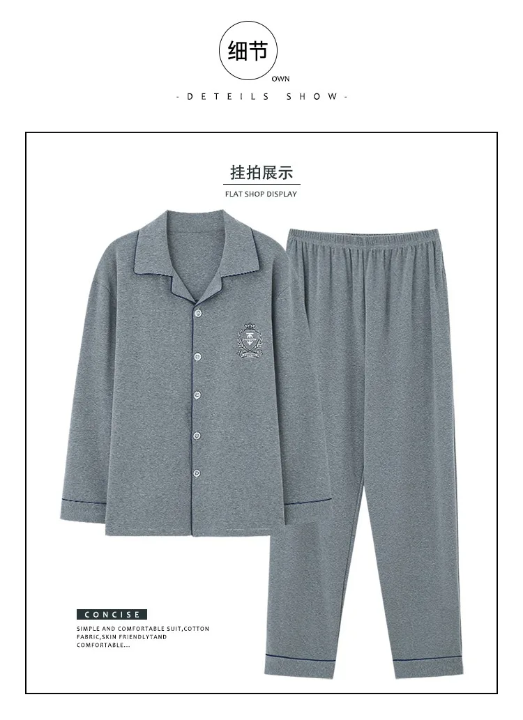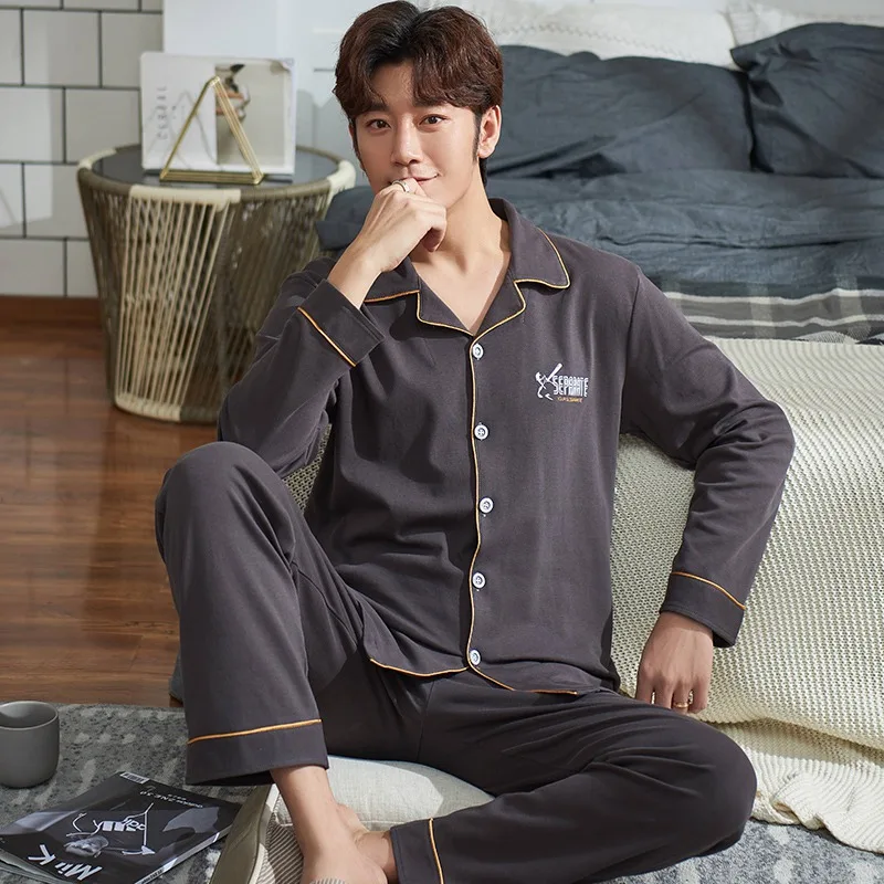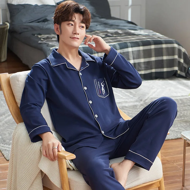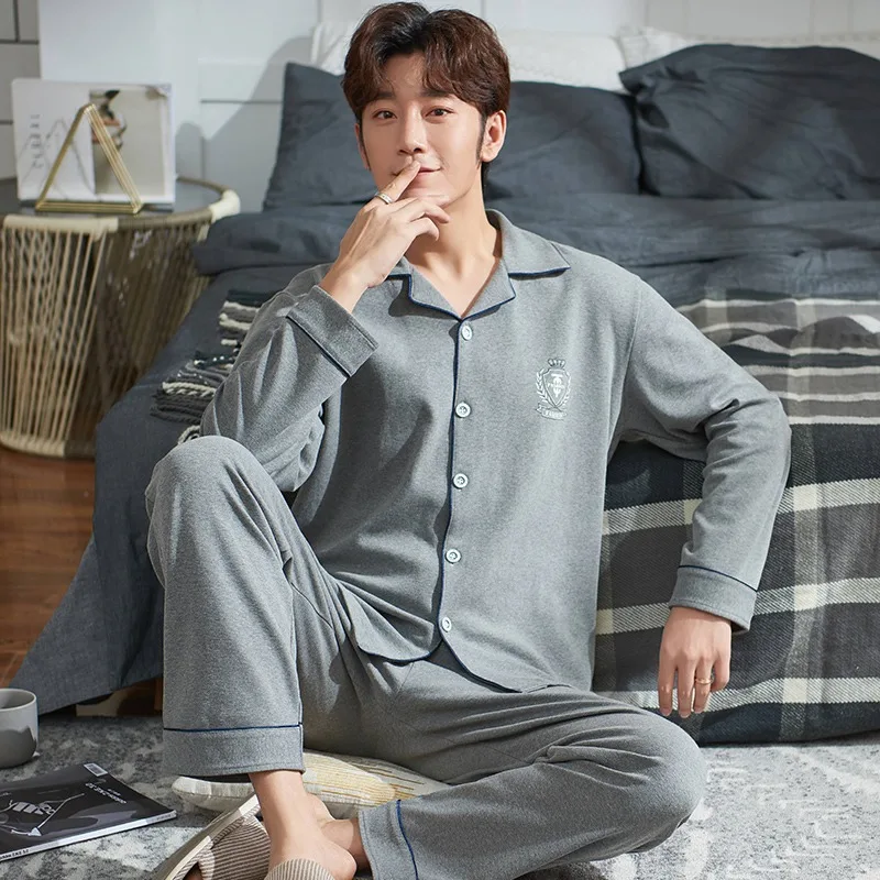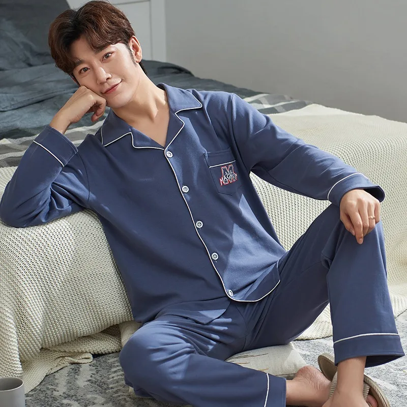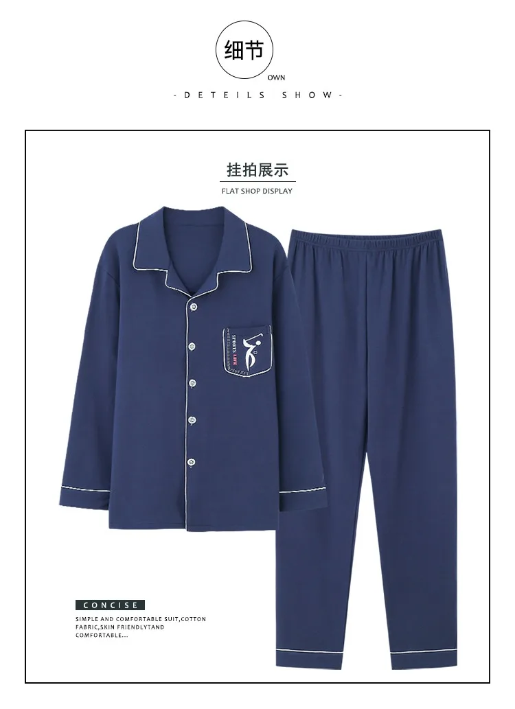 Осень-зима 2019, 100% хлопковые Пижамные комплекты для мужчин, мягкая удобная пижама с длинным рукавом, костюм, домашняя одежда