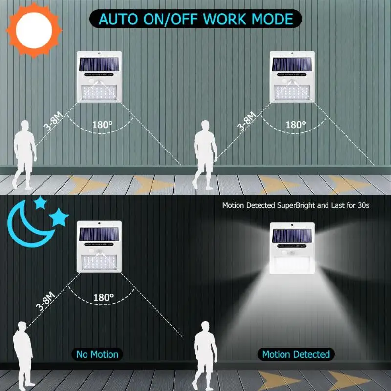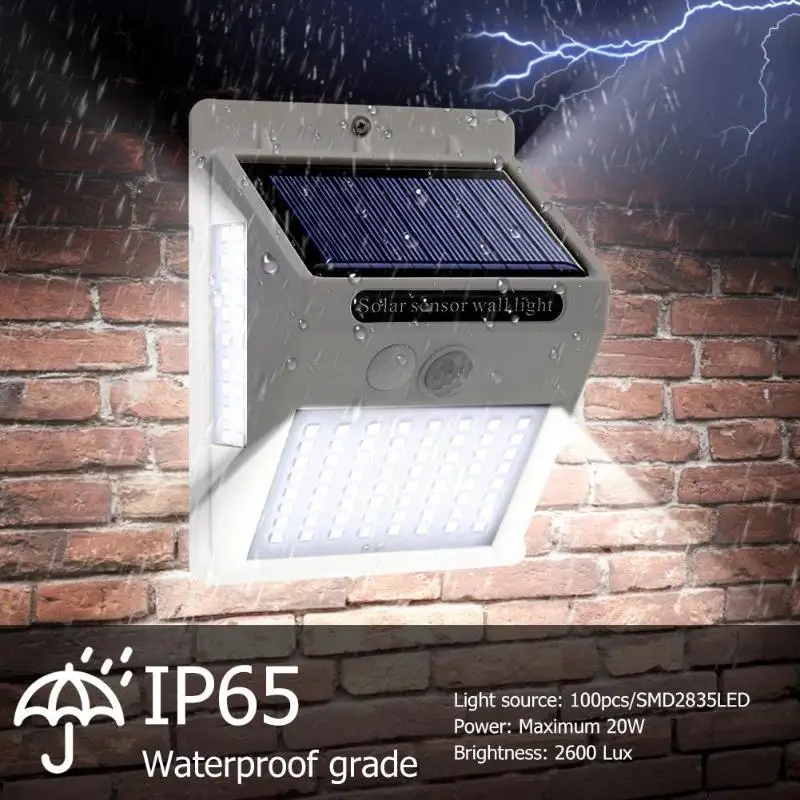 Уличная светодиодная настенная лампа на солнечной батарее, водонепроницаемый светильник с пассивным ИК датчиком движения, декоративное освещение для сада уличное светильник щение с питанием от солнечной батареи, 100 светодиодов