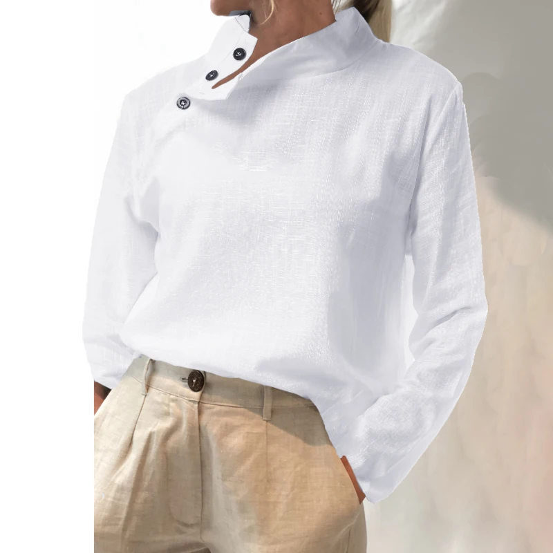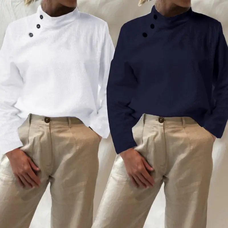 Блузка женская хлопковая льняная, с длинным рукавом, на пуговицах, ...