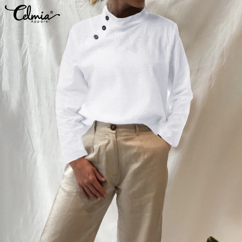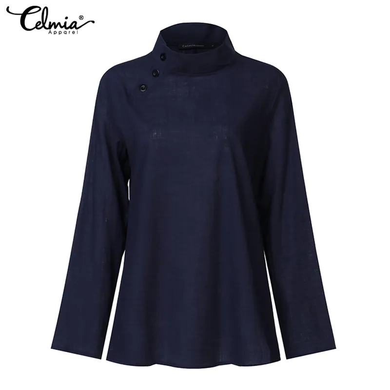 Осень 2022, рубашки Celmia с длинным рукавом, винтажные топы из хлопка и льна, женские блузки, повседневные свободные женские блузки на пуговицах