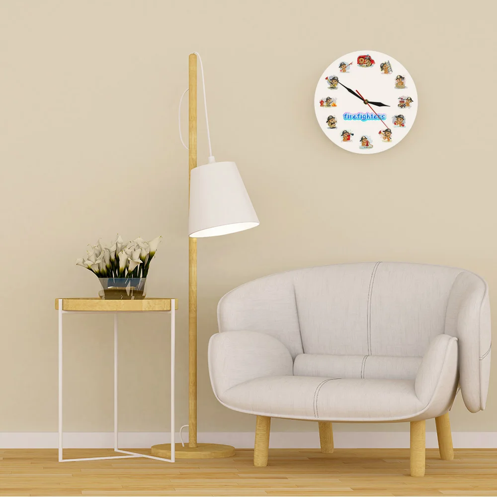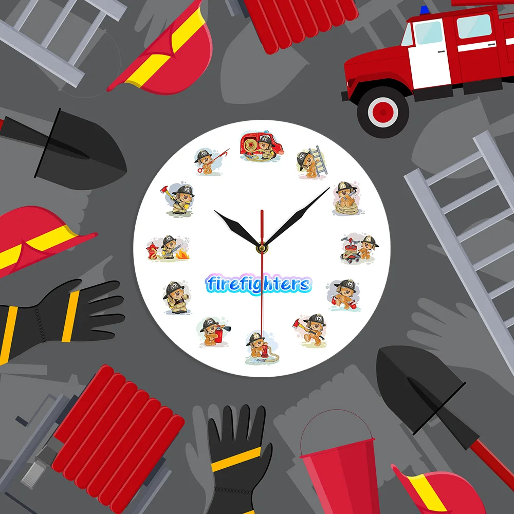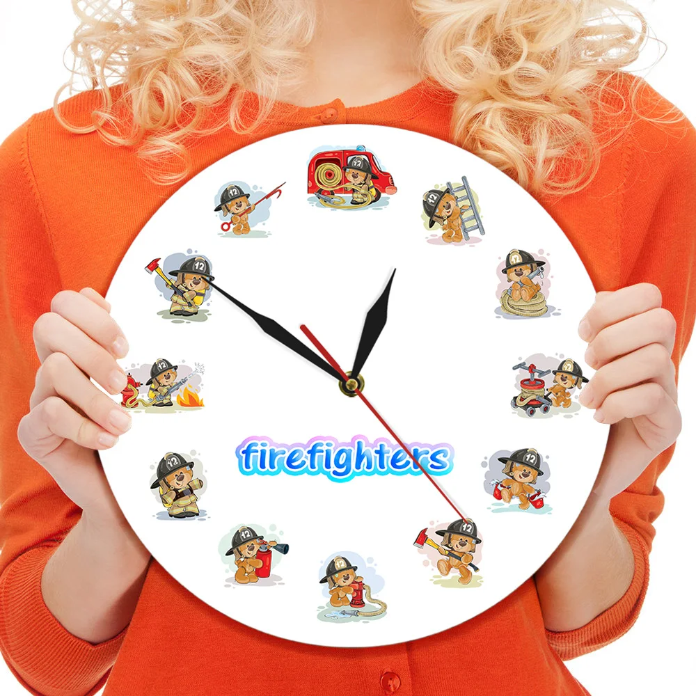 Милые персонажи мультфильмов, пожарные настенные часы, пожарный герой, милый Мишка, пожарный с спасательным снаряжением, Детский Настенный декор