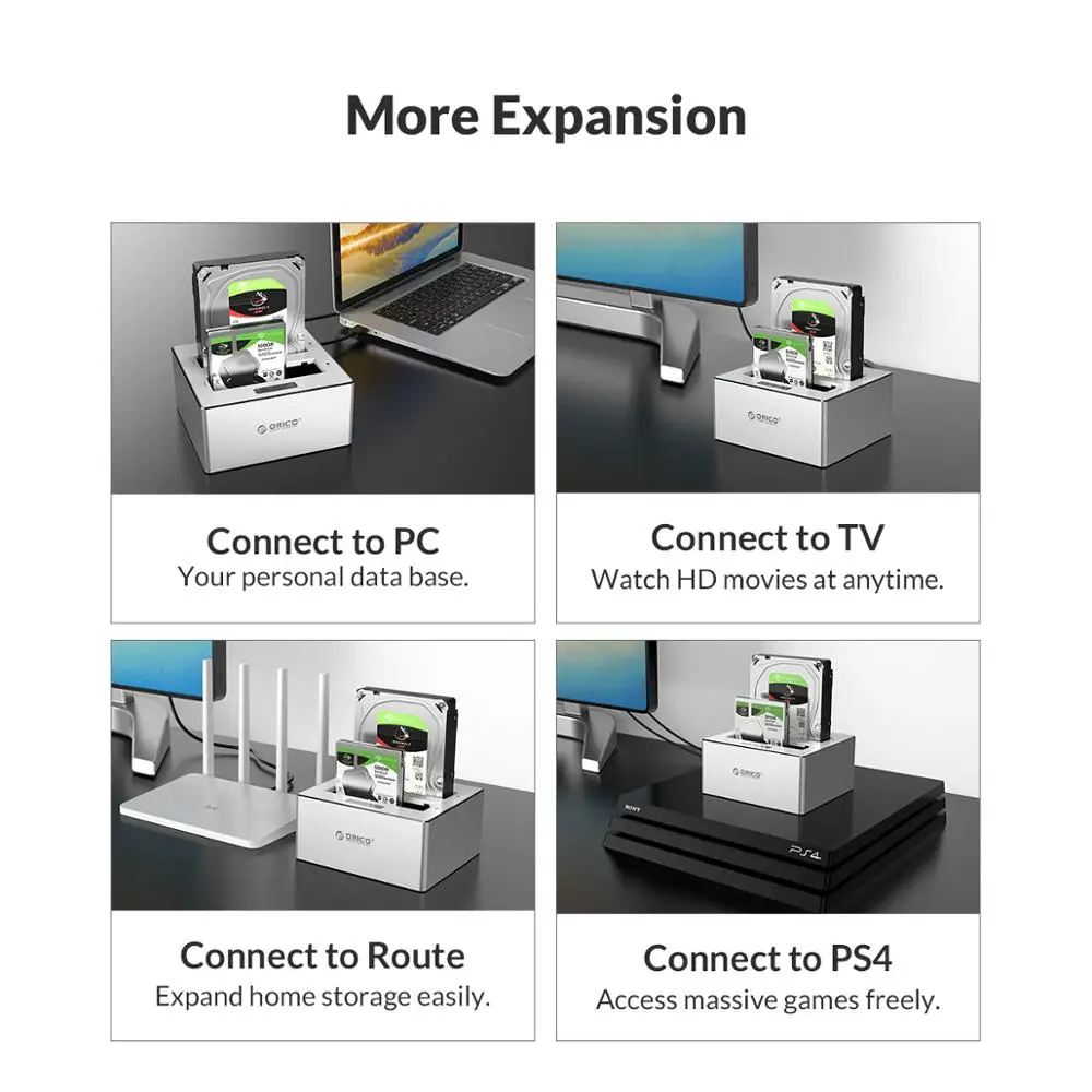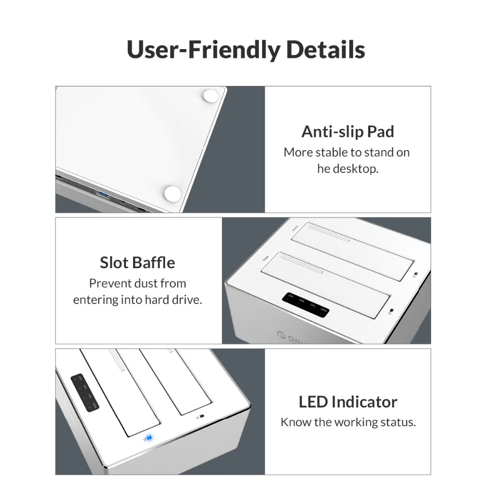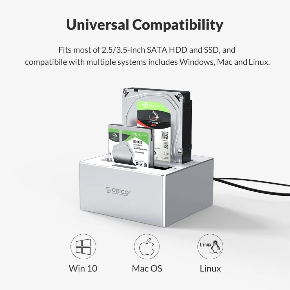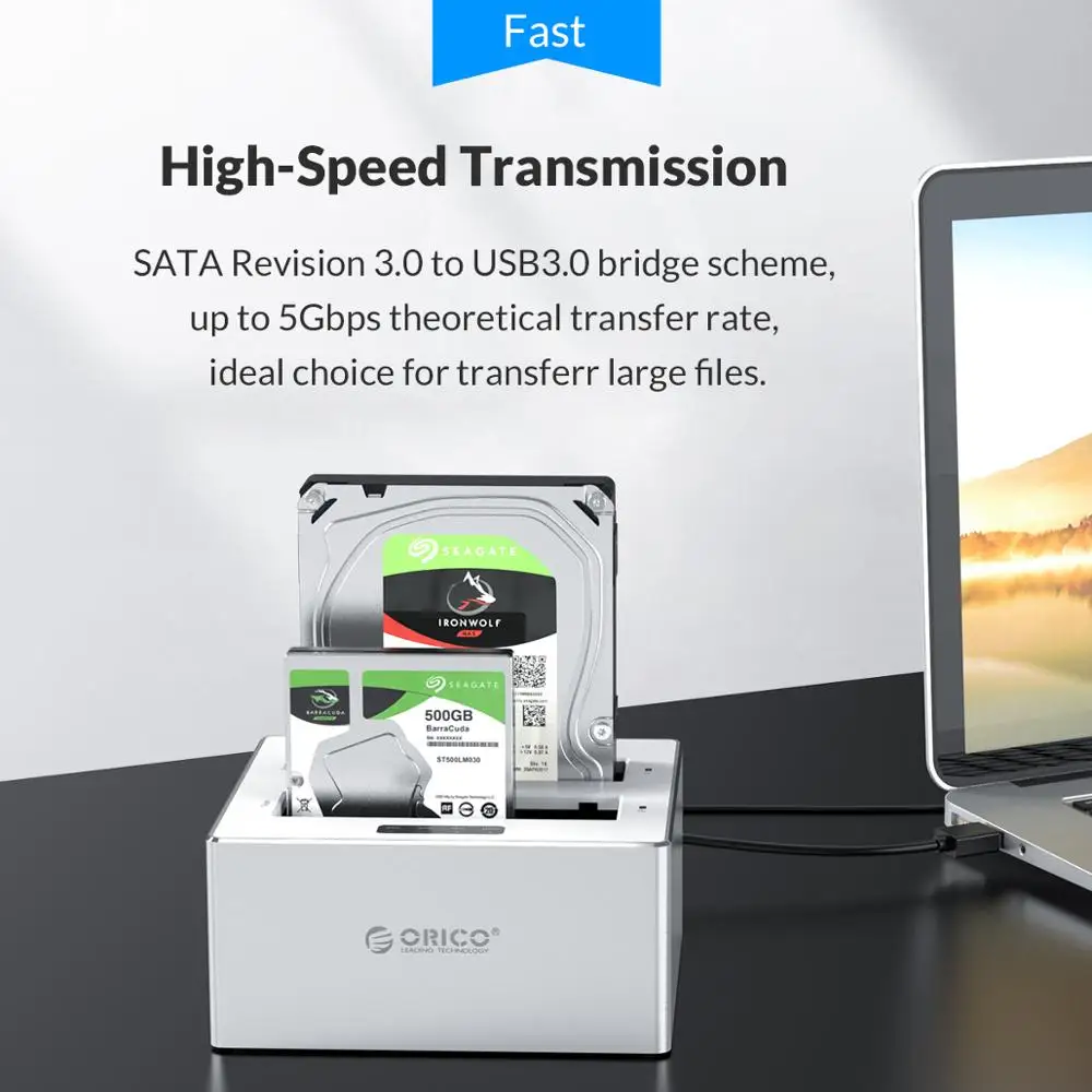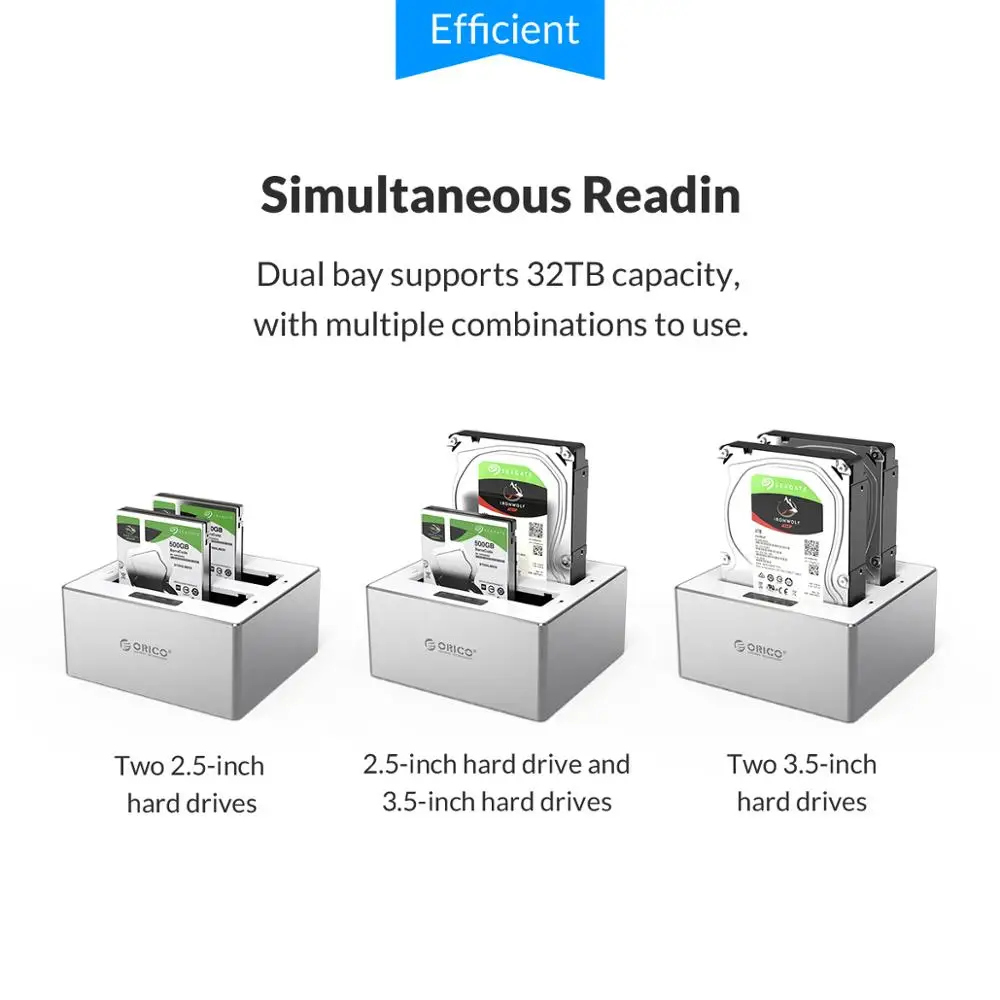 ORICO 3,5 дюйма USB3.0 корпус жесткого диска с двумя отсеками HDD корпус Sata док-станция для жесткого диска Поддержка 5 Гбитс 32 ТБ Емкость