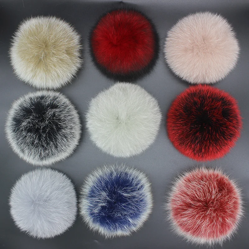 Пушистые Помпоны из лисьего меха с пуговицами 13- 15 см, шарики из лисьего меха DIY, помпоны из натурального меха для шарфов, шляпа и сумка, аксессуары