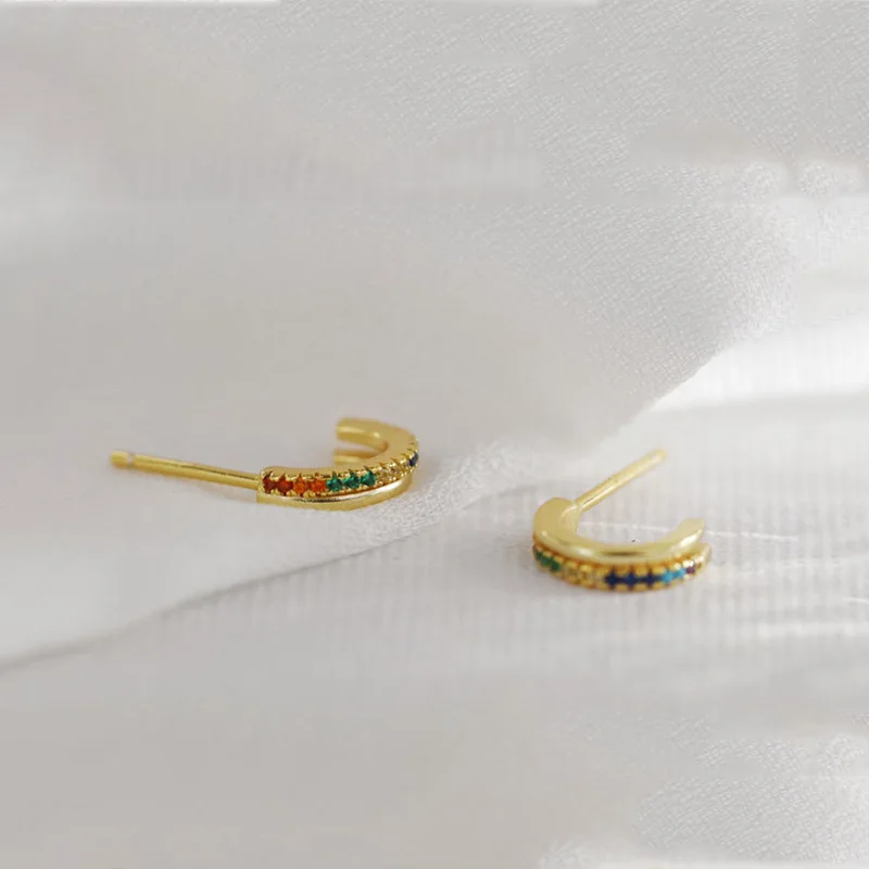 Серьги-кольца женские, с разноцветными Фианитами, 925 пробы