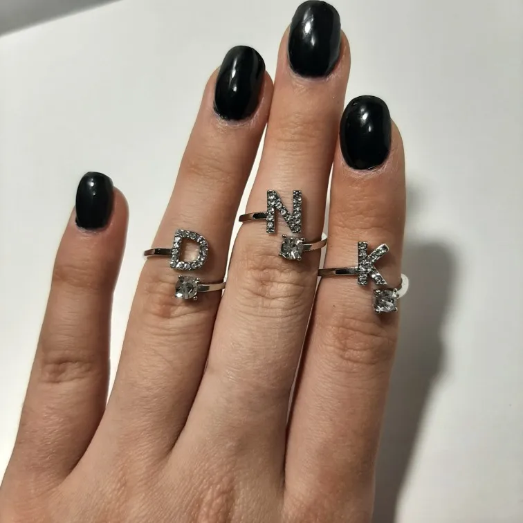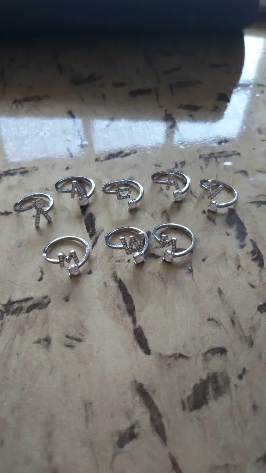 Заказывали 3 колечка с разными буквами. Пришли в коробочке аккуратно упакованы. Заказ пришёл быстро, картинке соответствует, смотрится мило, сверкает). Довольны!
