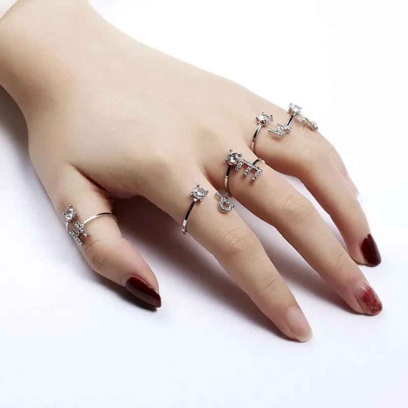 Кольцо женское с 26 буквами, регулируемое с паве из фианита