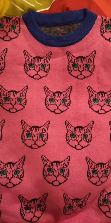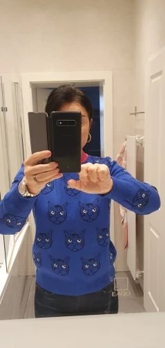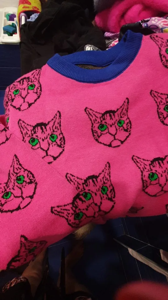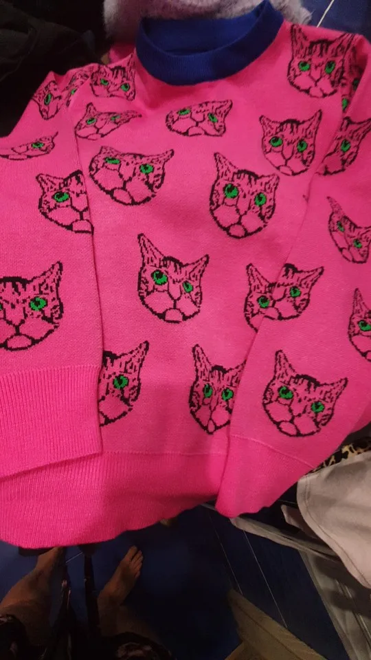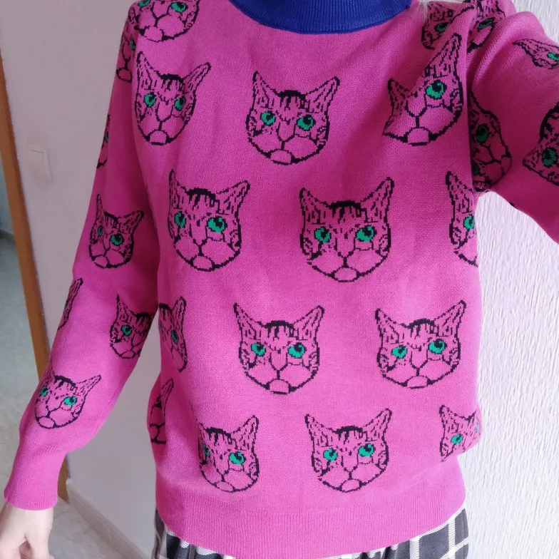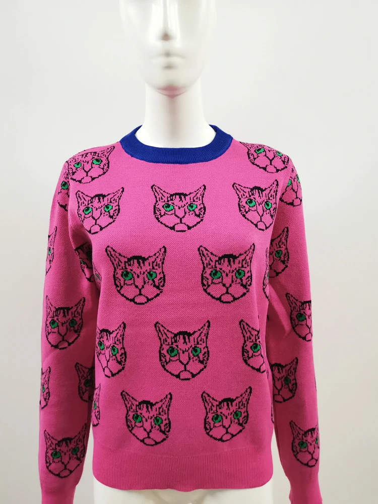 Женский жаккардовый джемпер, теплый трикотажный пуловер с длинным рукавом, с мультяшным котом, Осень-зима