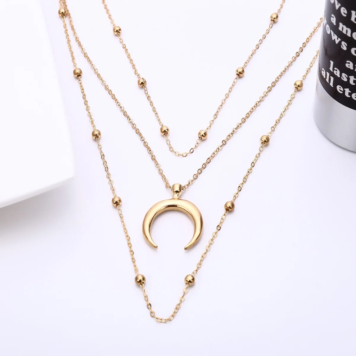 Женское Ожерелье с кулоном Луна, ожерелье в богемном стиле с кулоном Луна, зубы