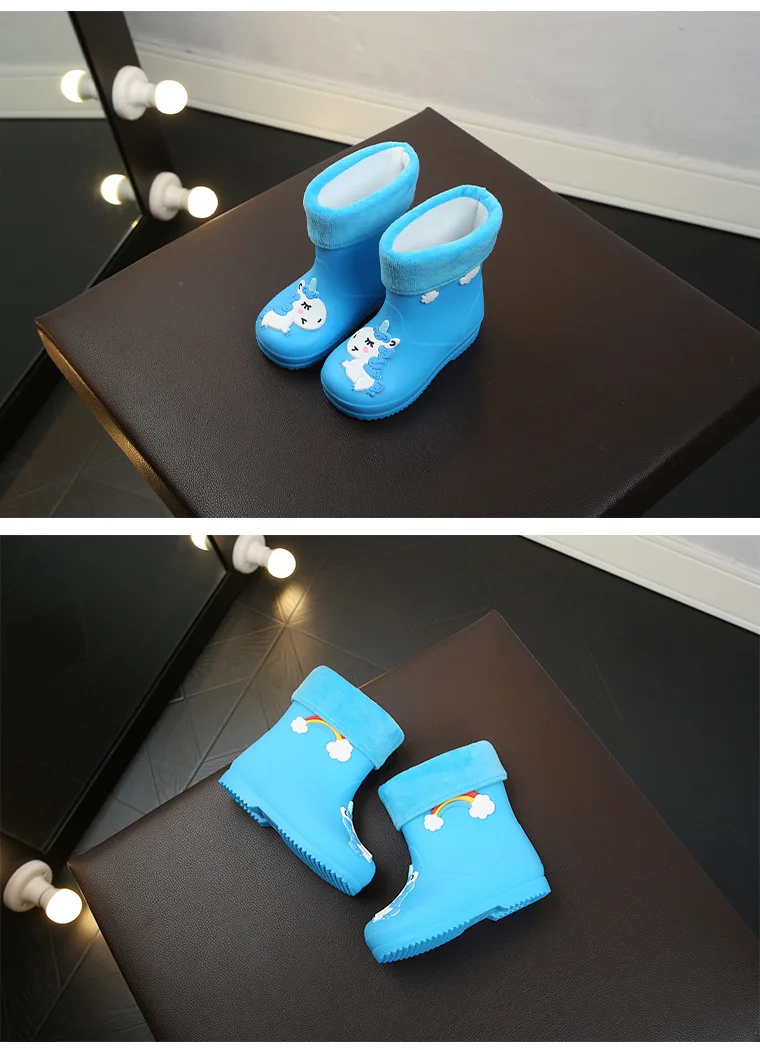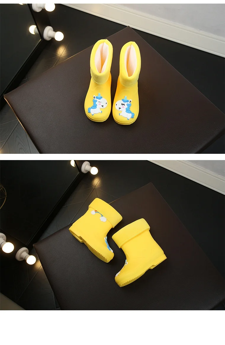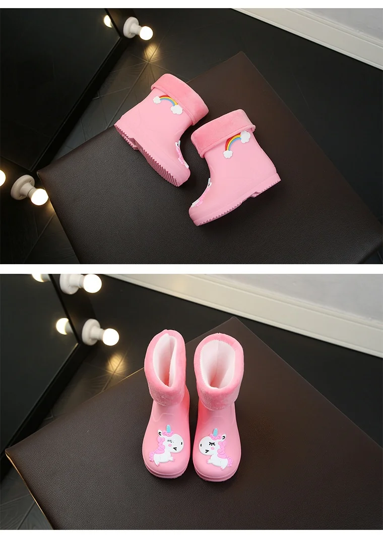 Резиновые сапоги для маленьких девочек и мальчиков, непромокаемые Нескользящие, розовые, с единорогом, всесезонные, съемные