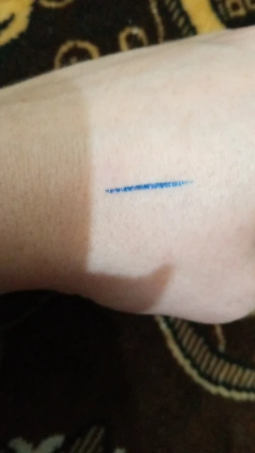 Хороший стержень, легко ведет линию. Цвет бомбический, как и хотела. Пахнет немного маркером, но не критично) Провела линию на коже руки, быстро закрепился, при прикосновении след не оставляет. Легко смывается водой с мылом, при этом он не стирается, а как бы мелко крошится. Посмотрим, надолго ли хватит. Покупкой довольна, тем более за такую невысокую цену. Спасибо!