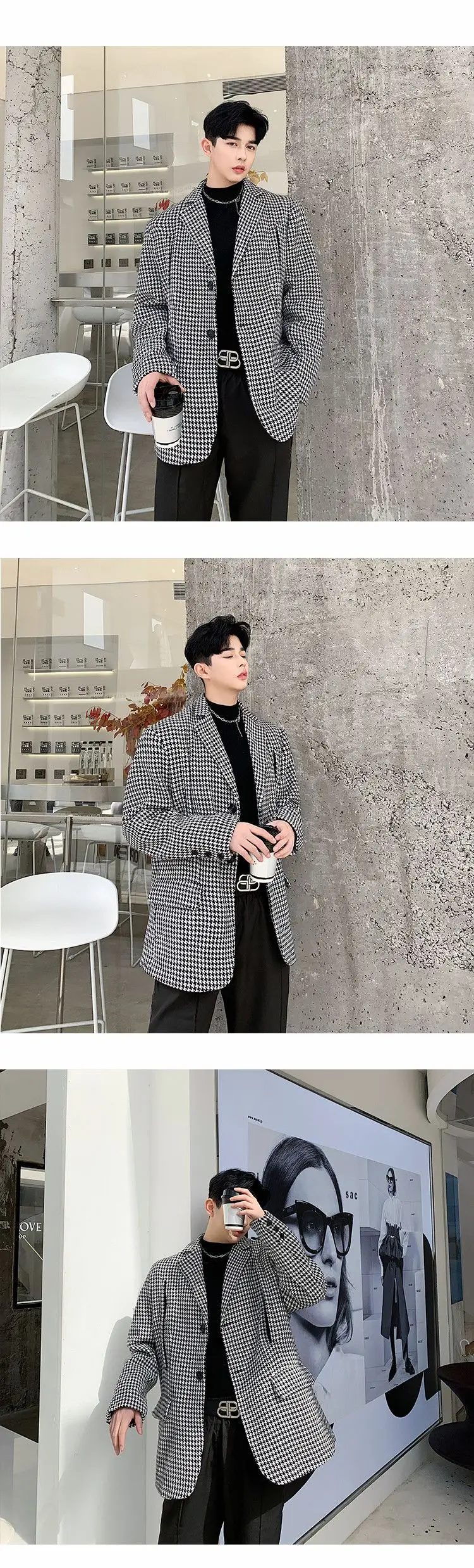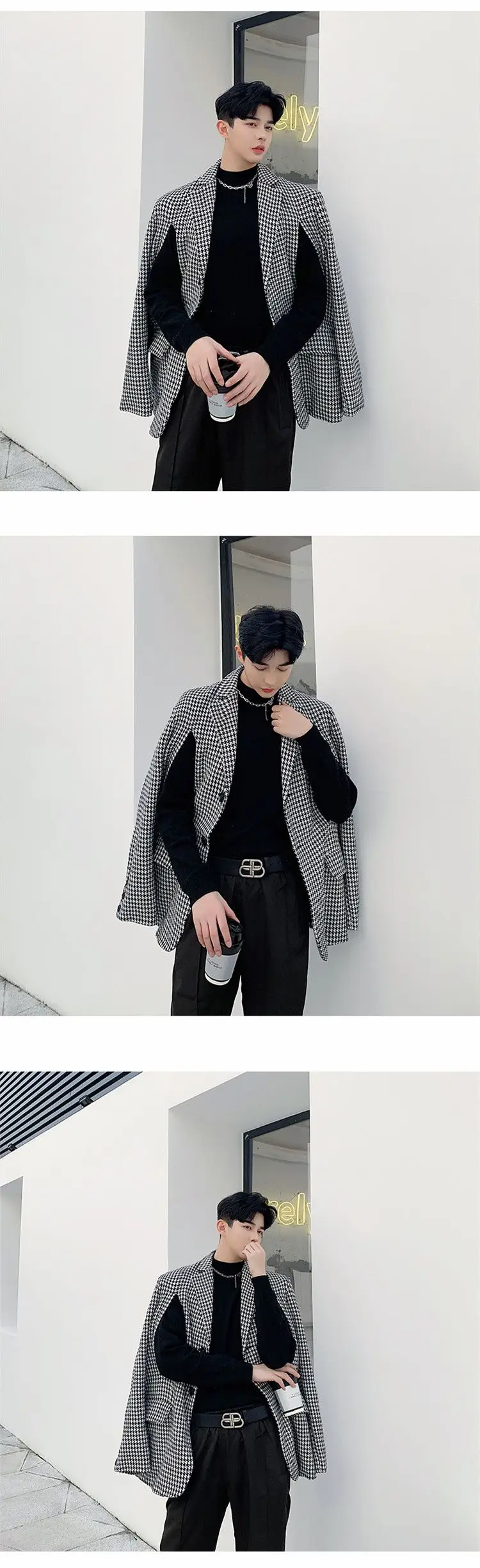 Мужской Блейзер MIXCUBIC, повседневный свободный пиджак в клетку, с двусторонним швом, осень 2019, в Корейском стиле, M-XL