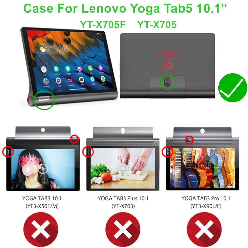 Чехол подходит только для Lenovo Yoga Tab5 Smart Tab 10,1 ''YT-X705F X705, Пожалуйста, подтвердите модель планшета, как показано ниже;