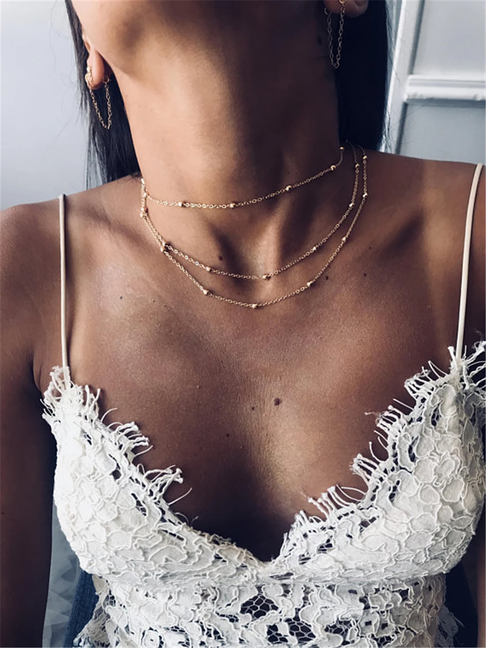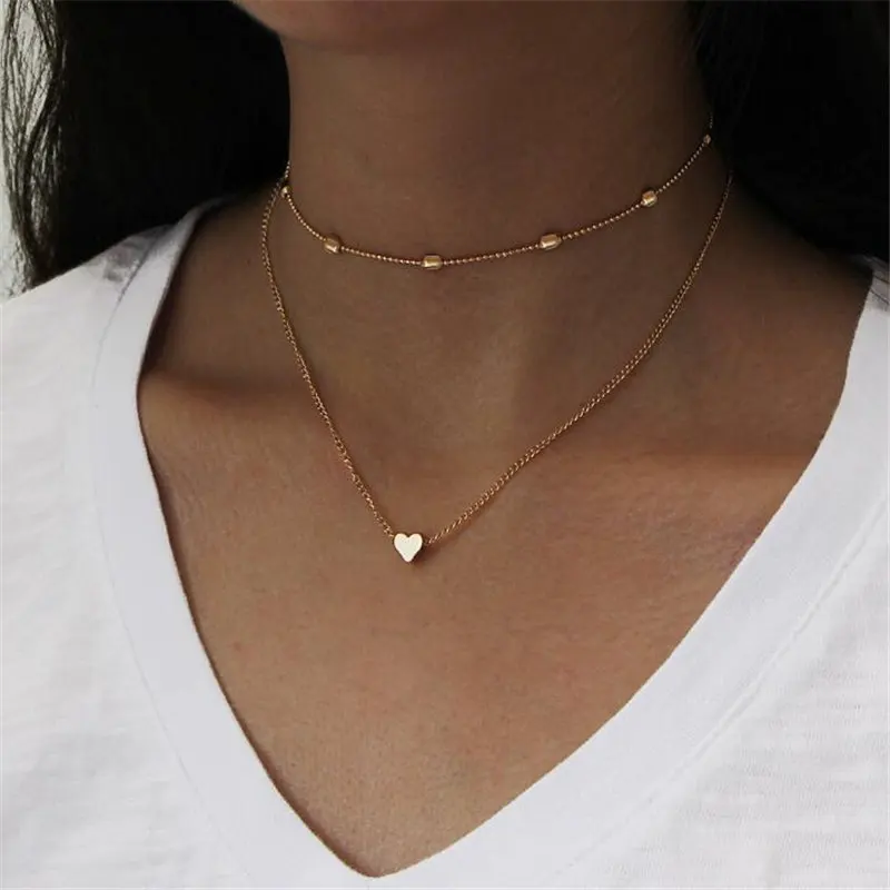 Новое модное ожерелье Позолоченное серебряное ожерелье-чокер женские бусы цепочка Двухслойное ожерелье оптовая продажа Прямая поставка