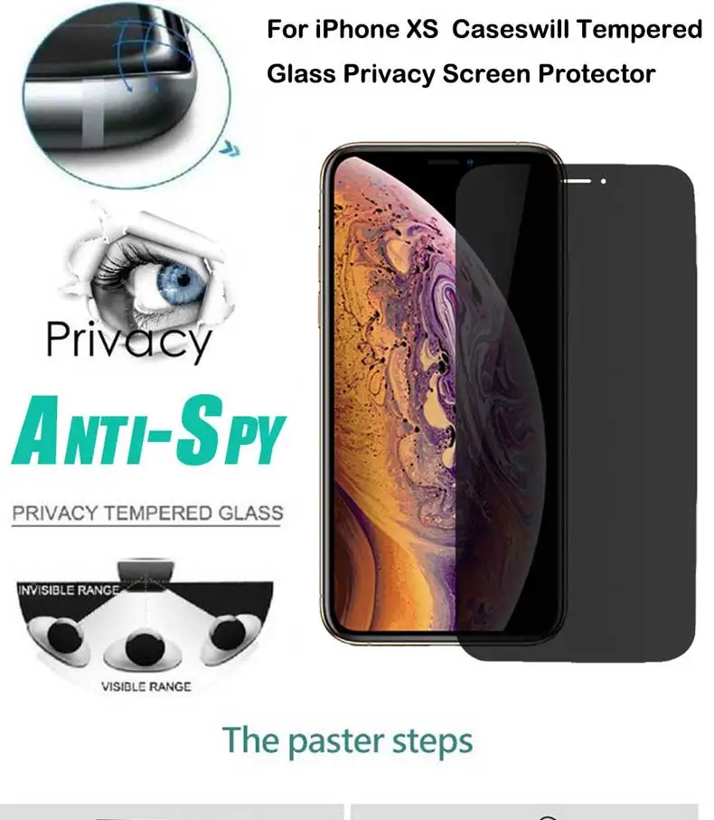 Privacy Screen Protector 9Anti spy Tempered Glass For iPhone XS