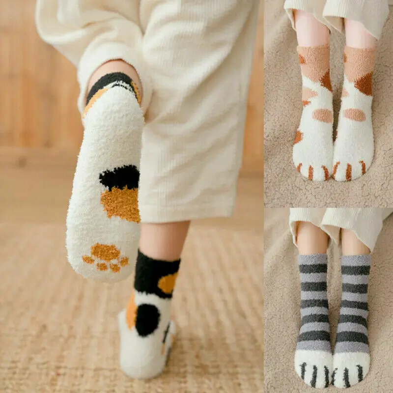 Зимние носки с кошачьими когтями, милые толстые теплые носки для сн...