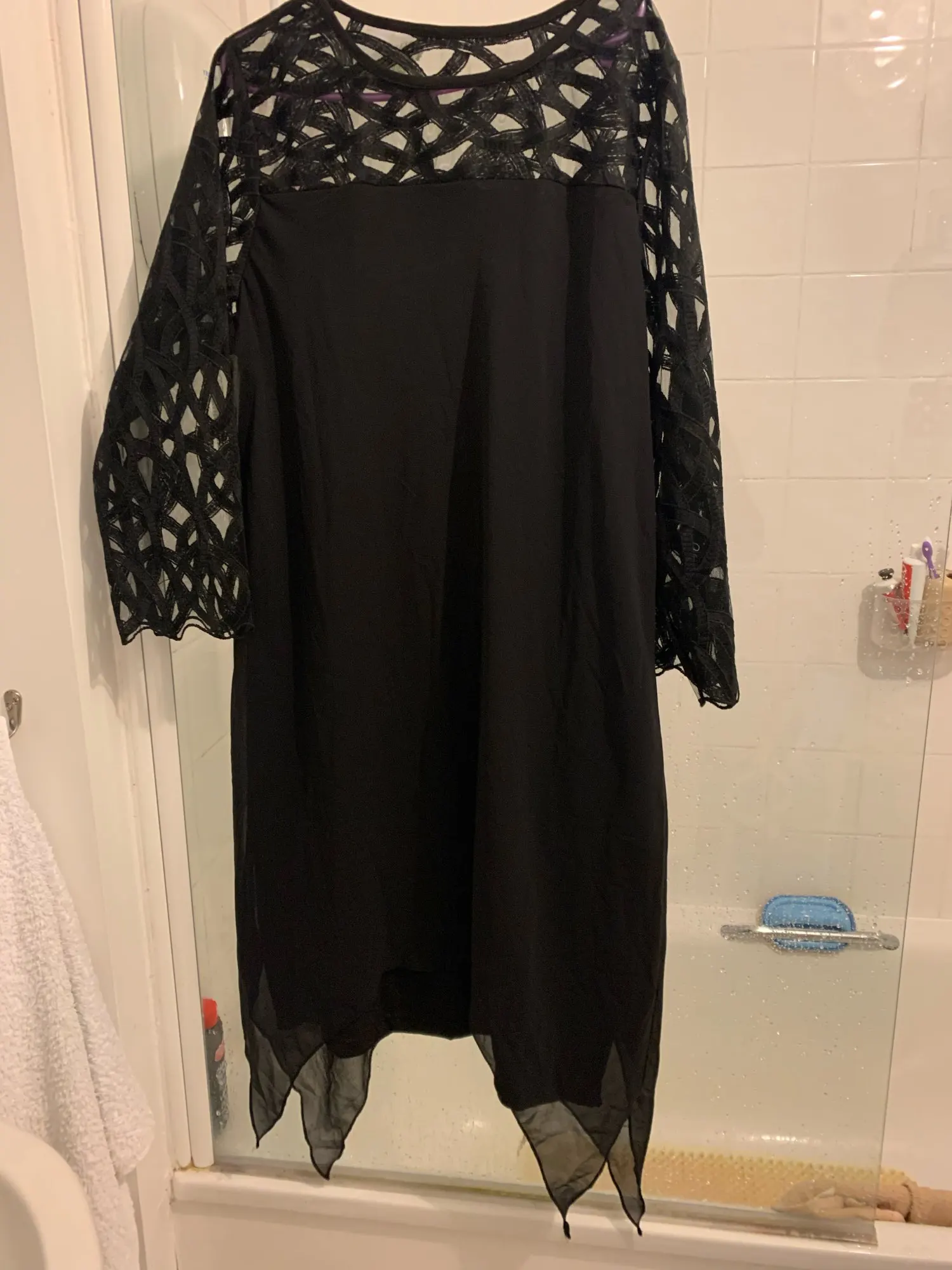 Он не подходит удобно, а подол очень изогнут, Длинные части сидят наполовину на одной стороне внутри сбоку. Я не могу носить его где угодно