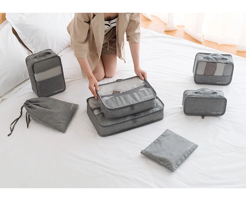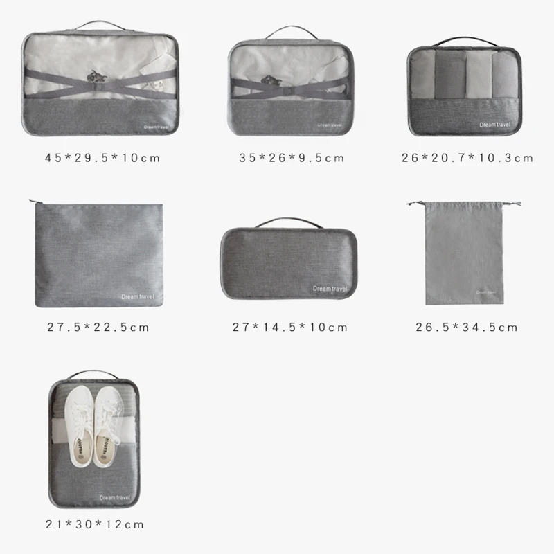 Комплект из 7 предметов, органайзер, одежда, нижнее белье, сумка для обуви, аксессуары для путешествий, сумки для хранения багажа, органайзер, упаковка, сумки для одежды Материал; Катион Цвет: серый/черный/темно-синий/оранжевый/розовый 1 дюйм = 2,54 см 1 см = 0,39 дюймов Посылка включает в себя: 7 шт. в комплекте Органайзер для упаковки Поддержка Прямая поставка Лучший подарок для вашего или вашего друга