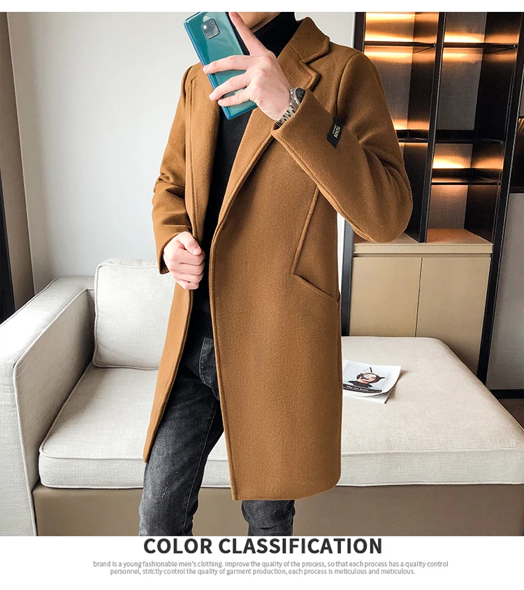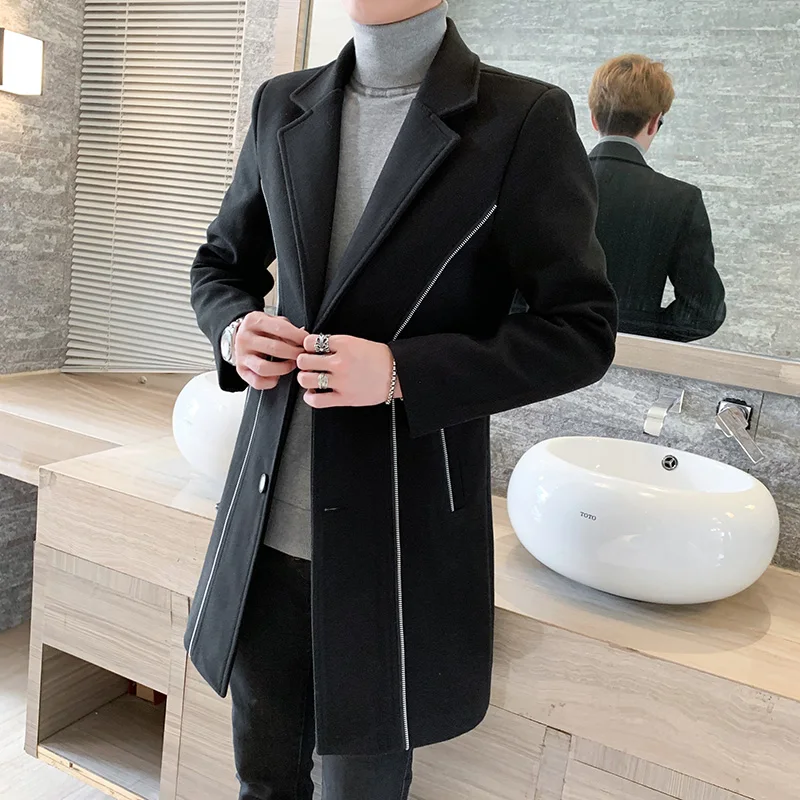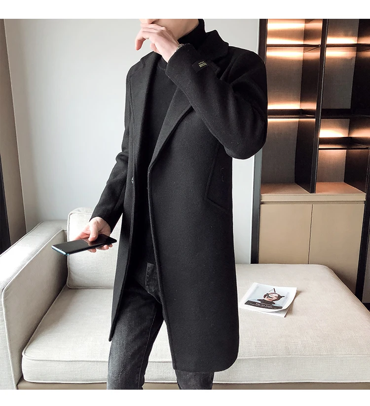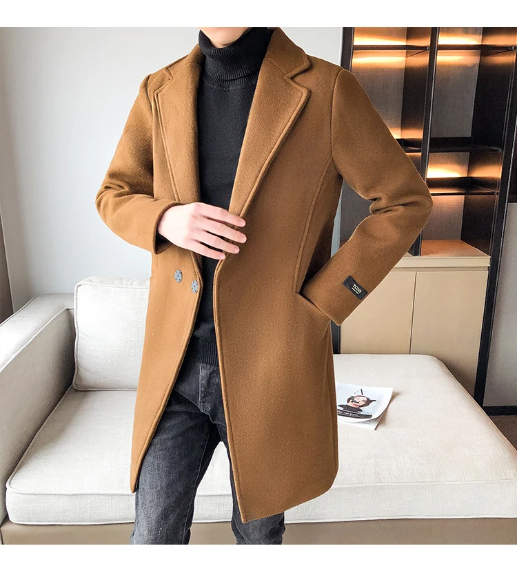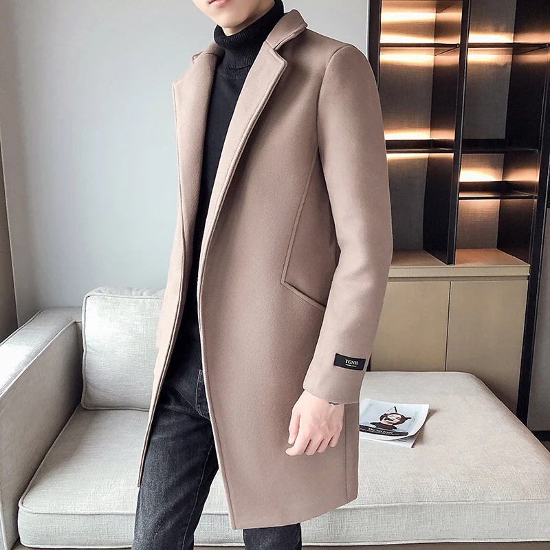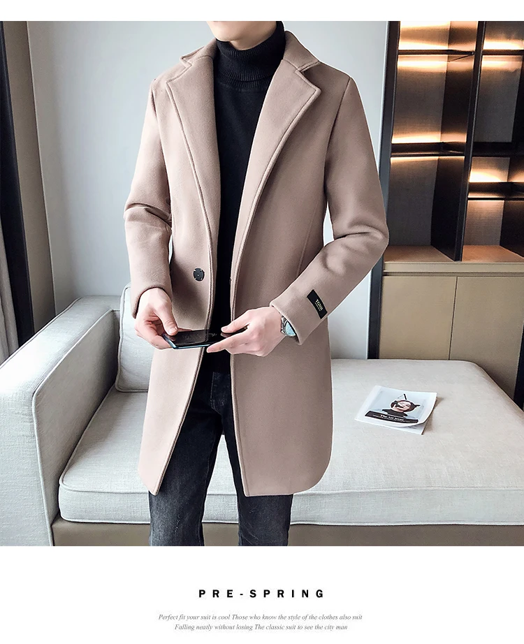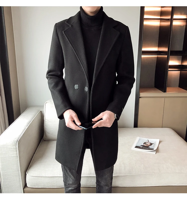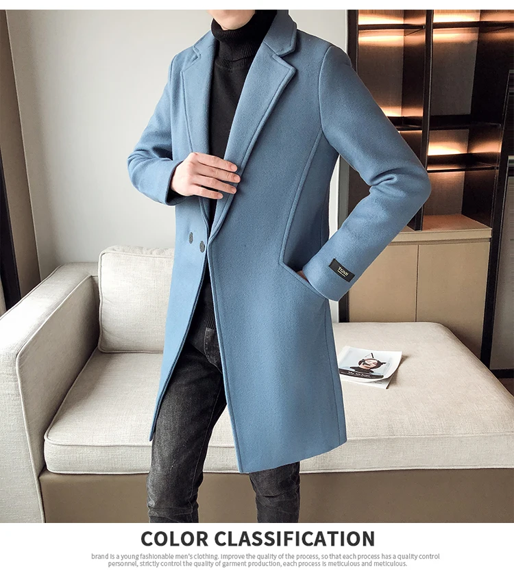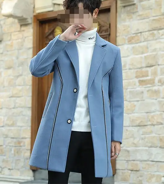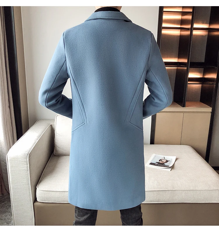 Элегантное голубое небо мужские Пальто Длинные куртки мужские винтажные зимние длинные тренчи приталенные Ретро британские шерстяные пальто белые хаки