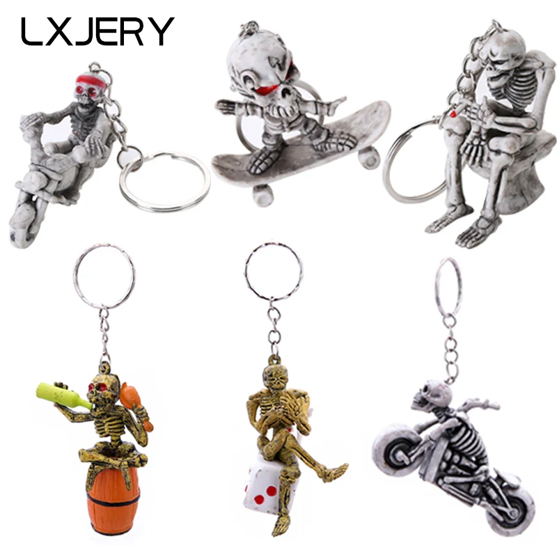 LXJERY Kuso Скейтборд Череп брелок со скелетом панк курительная цепочка для ключей с черепом для женщин сумка Подвеска в виде ключа кольцо Подарочные ювелирные изделия