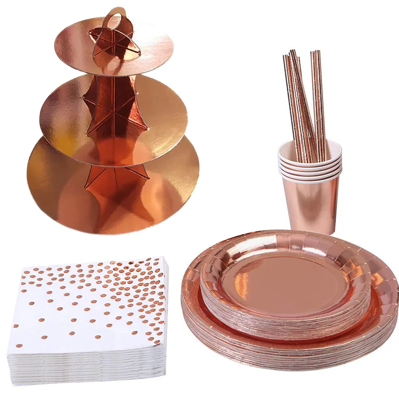 Одноразовая посуда, тарелки из розового золота, салфетки для стаканчиков для свадьбы, дня рождения, дня рождения, вечеринки