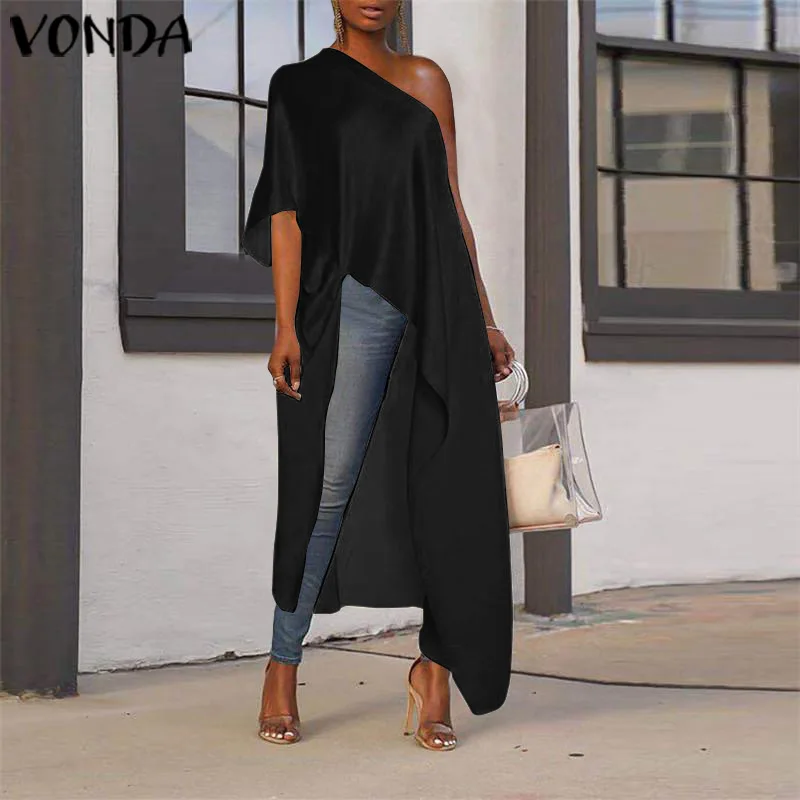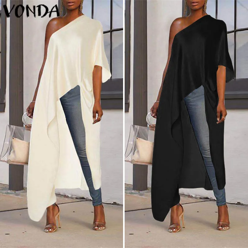 Блузка VONDA женская с открытым плечом, длинная Асимметричная туника, праздничные пляжные топы, 2021