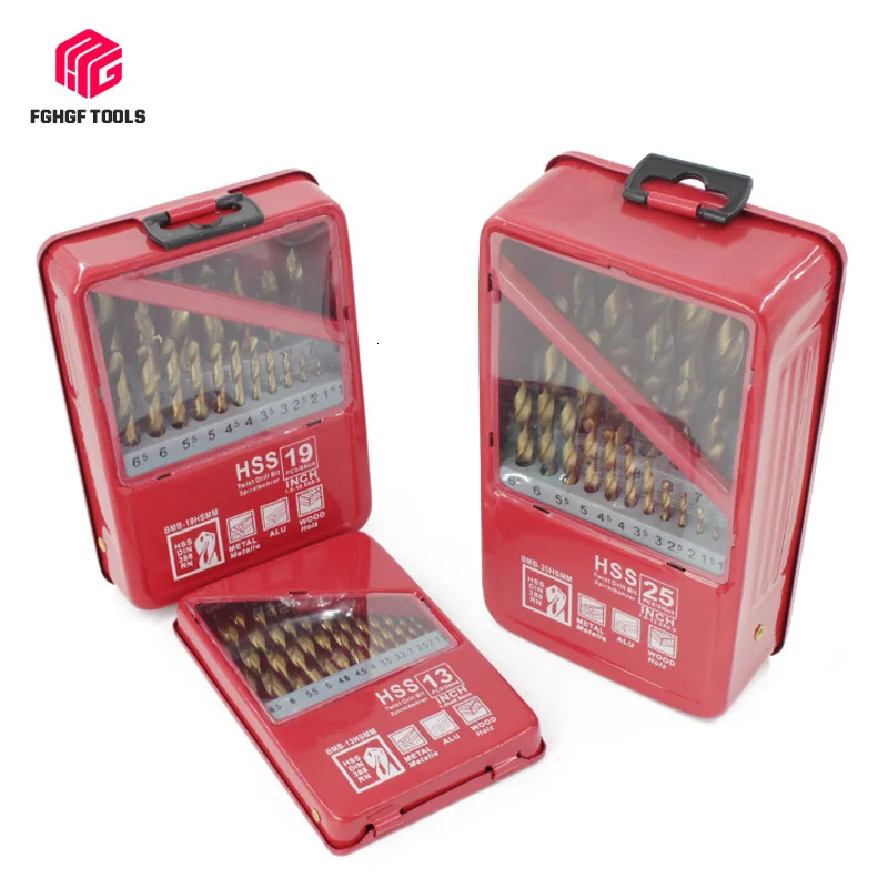 Набор сверл из быстрорежущей стали FGHGF, 131925 шт., 1 13 мм, с титановым покрытием, по металлу, для деревообработки, для сверления электроинструментов, с железным ящиком