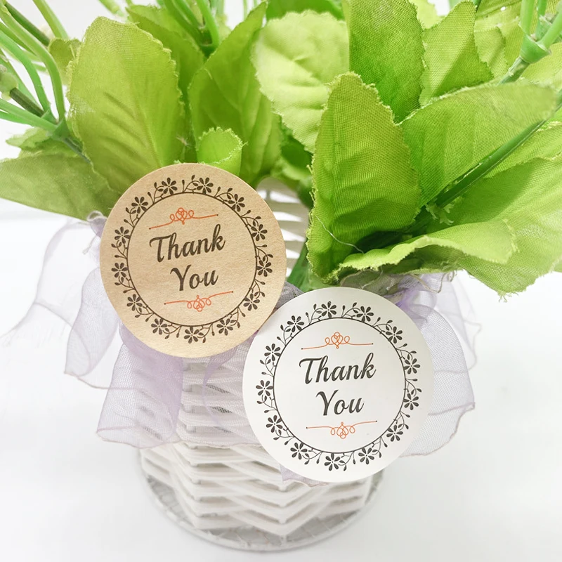 1200 шт.лот, круглые наклейки из крафт-бумаги с надписью Thank You