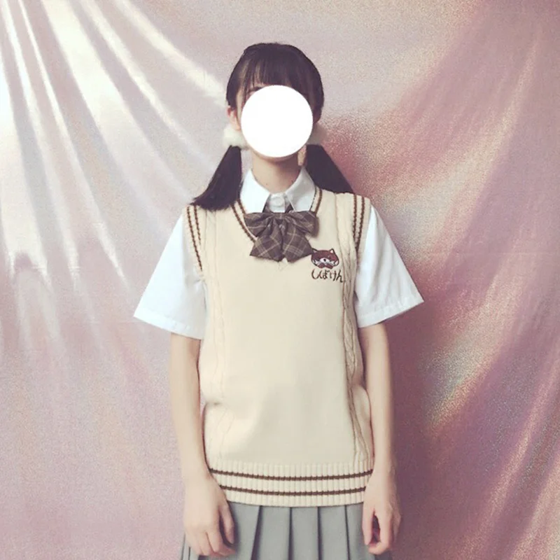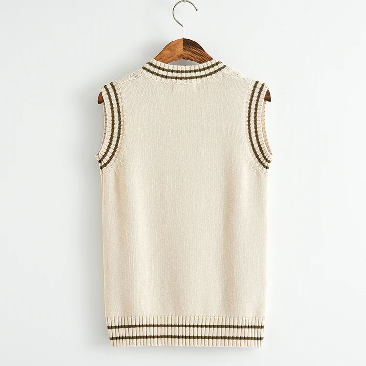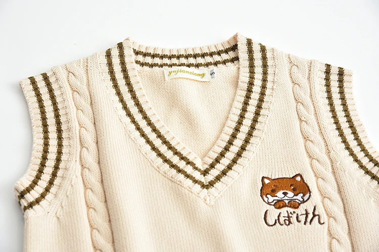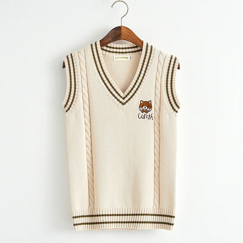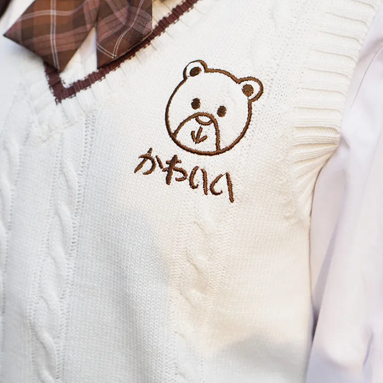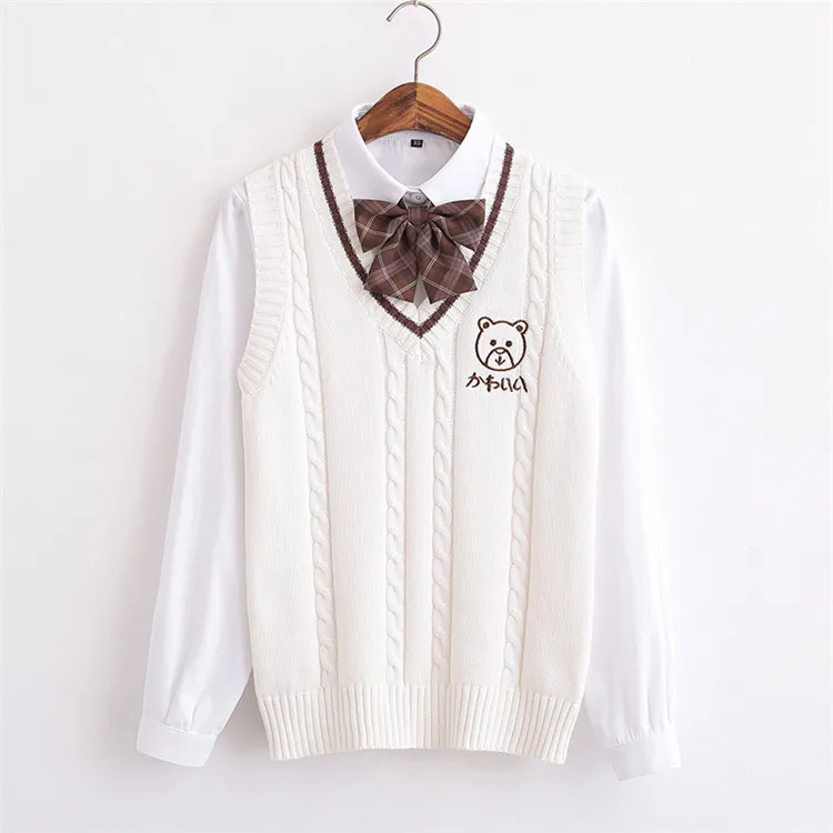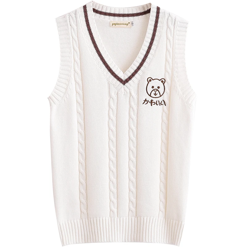 Японский кавайный вязаный свитер для женщин, винтажная школьная форма для девочек-подростков, жилет, джемпер без рукавов с вышитым мультяшным медведем