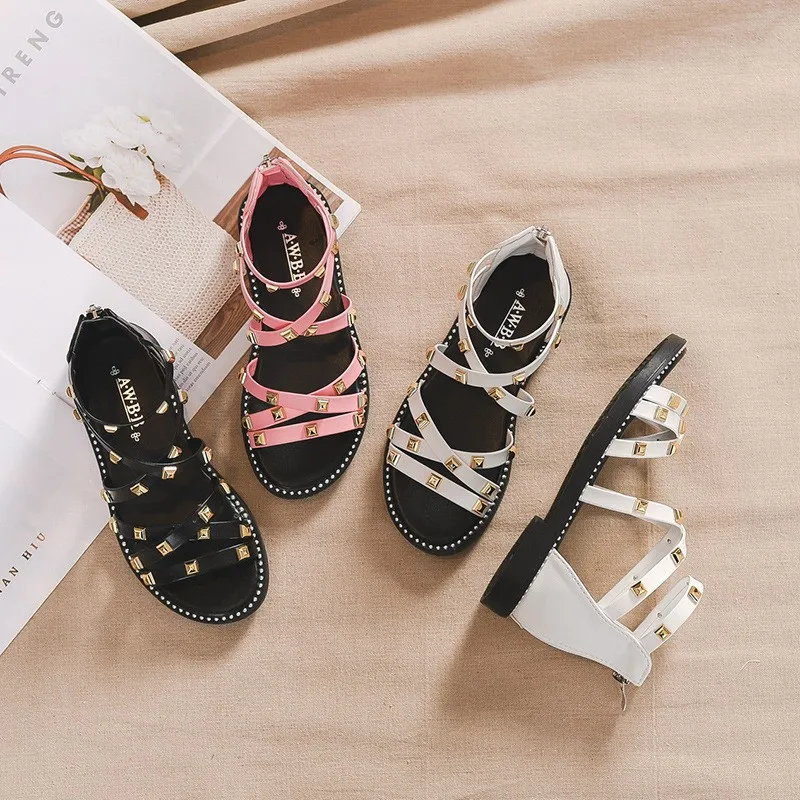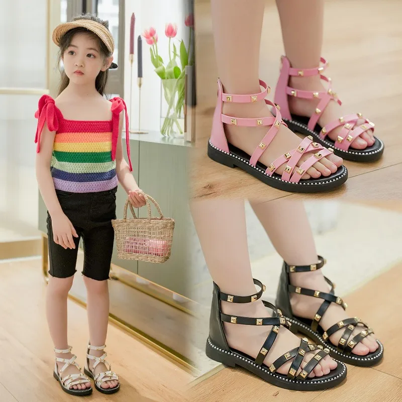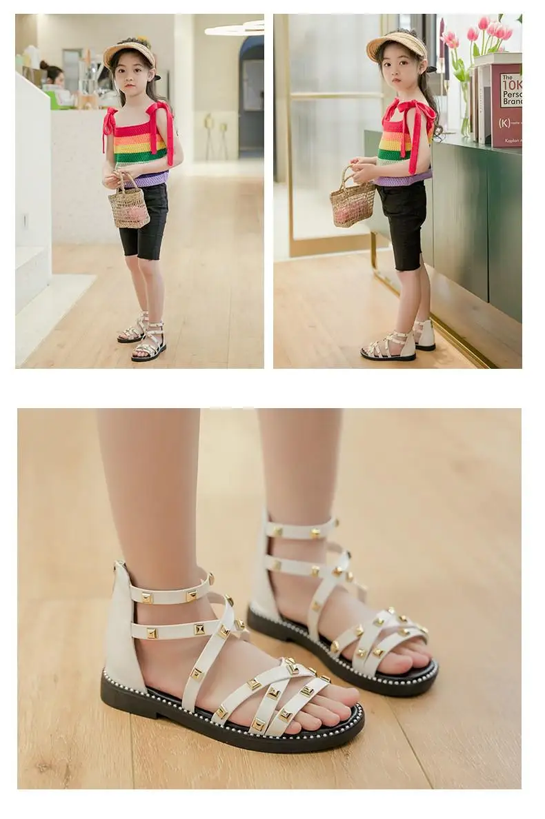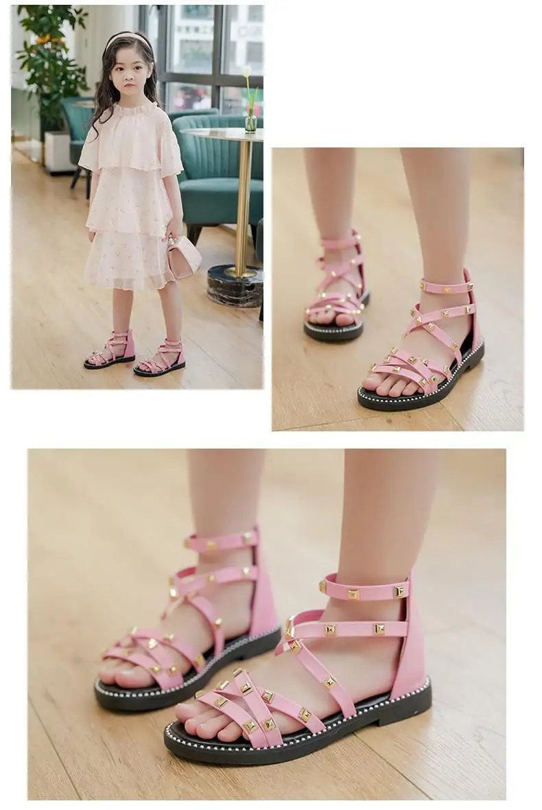 Сандалии с заклепками для девочек, новинка 2020, летняя детская обу...