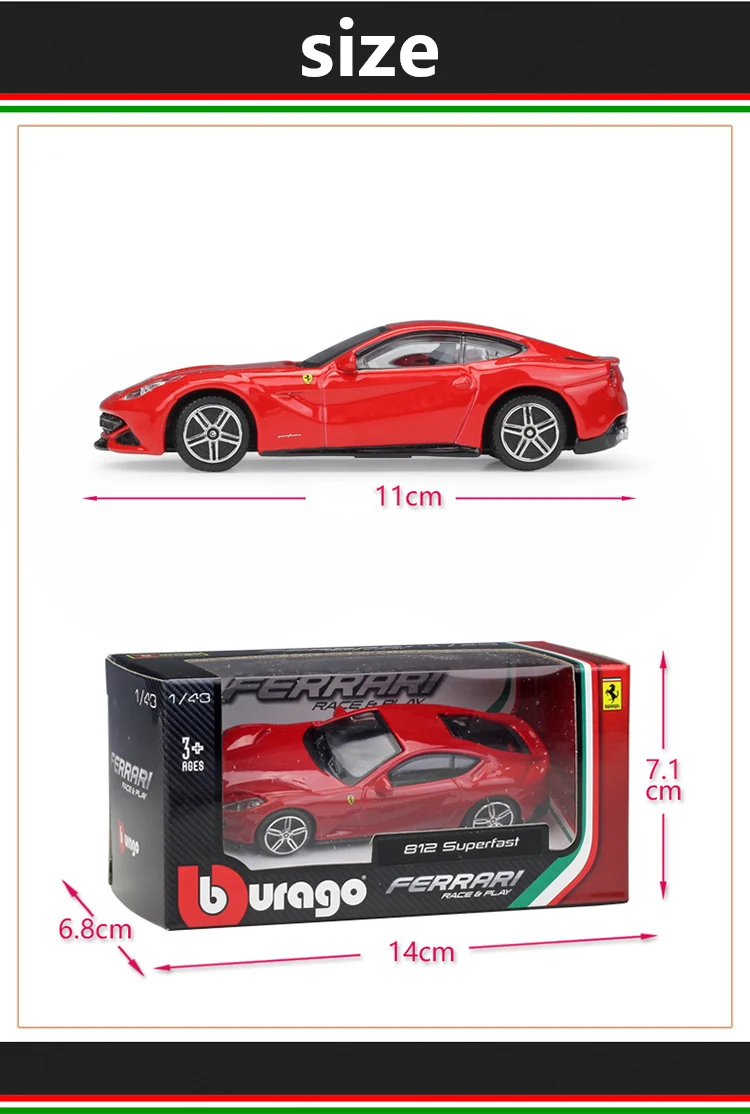 Модель гоночного автомобиля Bburago 1:43 Ferrari, из желтого сплава, имитация автомобиля, украшение, коллекционная игрушка в подарок