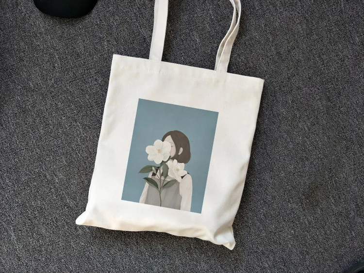 Женская сумка-шоппер Harajuku, Холщовая Сумка с цветочным принтом, ...